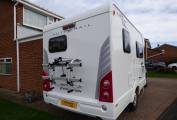 There are plenty of lockers and storage space throughout and the cab has all the usual refinements including air conditioning. with a 2.2 litre 140bhp Fiat engine, 2 x bike rack, Avtex TV, external windscreen cover and Global Telemetrics Tracker installed as well as the wind out canopy and solar panel this lovely motorhome is ready for action.