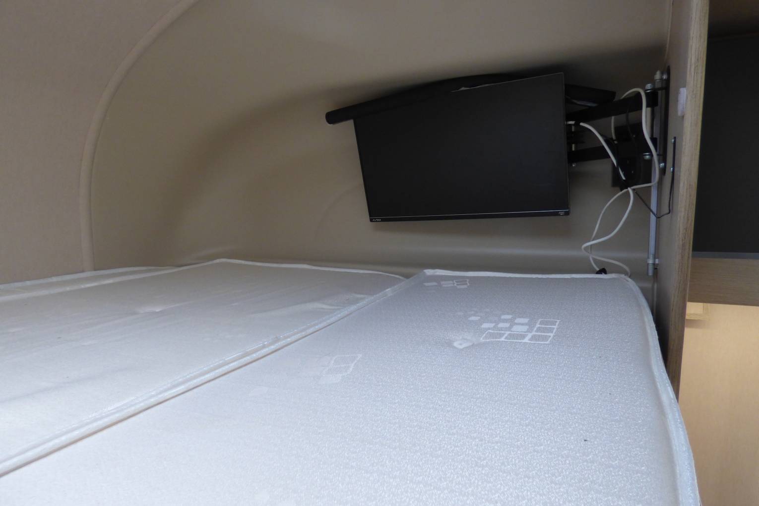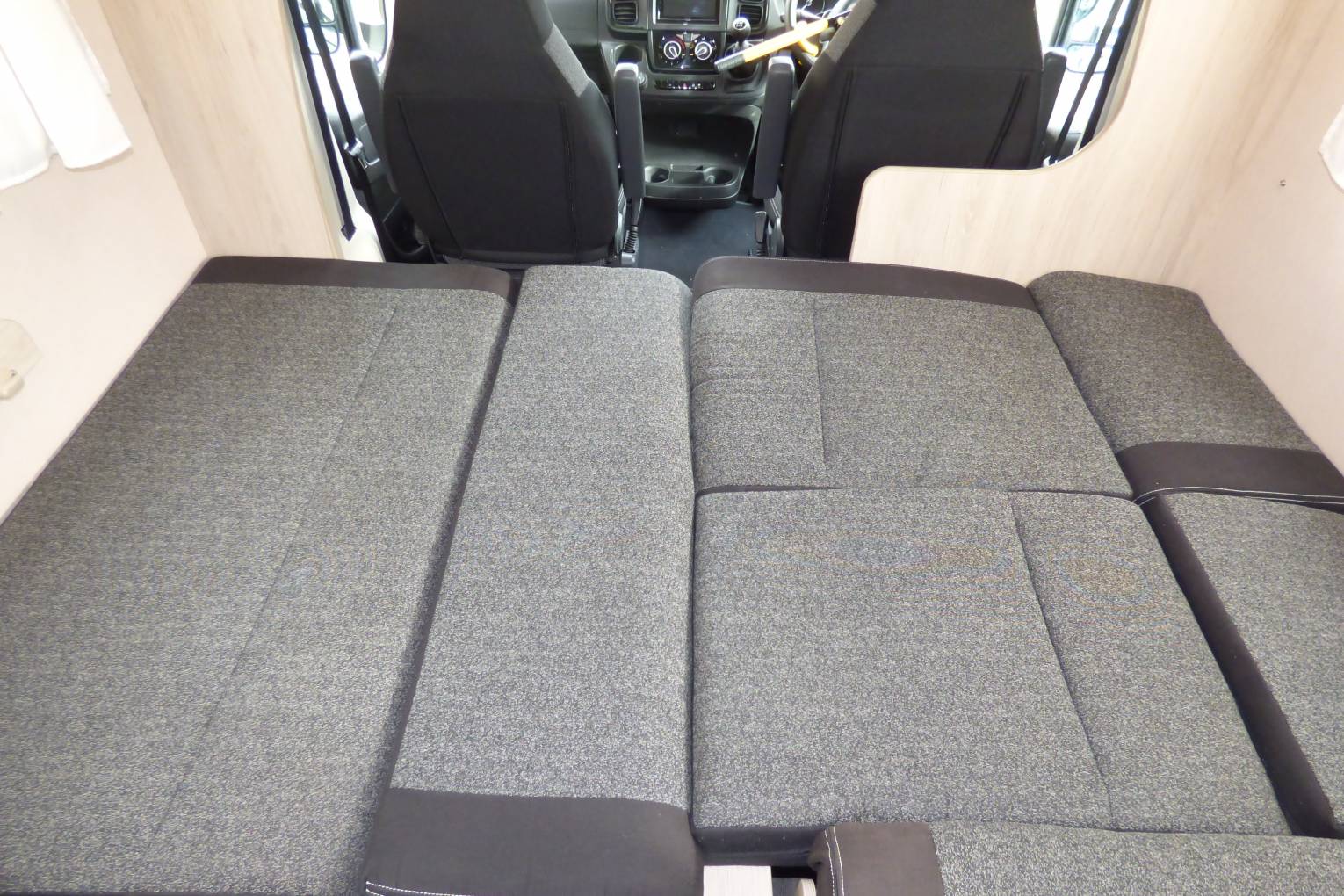 Sleeping accommodation comprises a double bed over the cab (6'2" x 3'10") and making up the large "L" shaped lounge area (7'1" x 6'1"). Alternatively the lounge bed can be used as a large single at 6'1"x2'4".