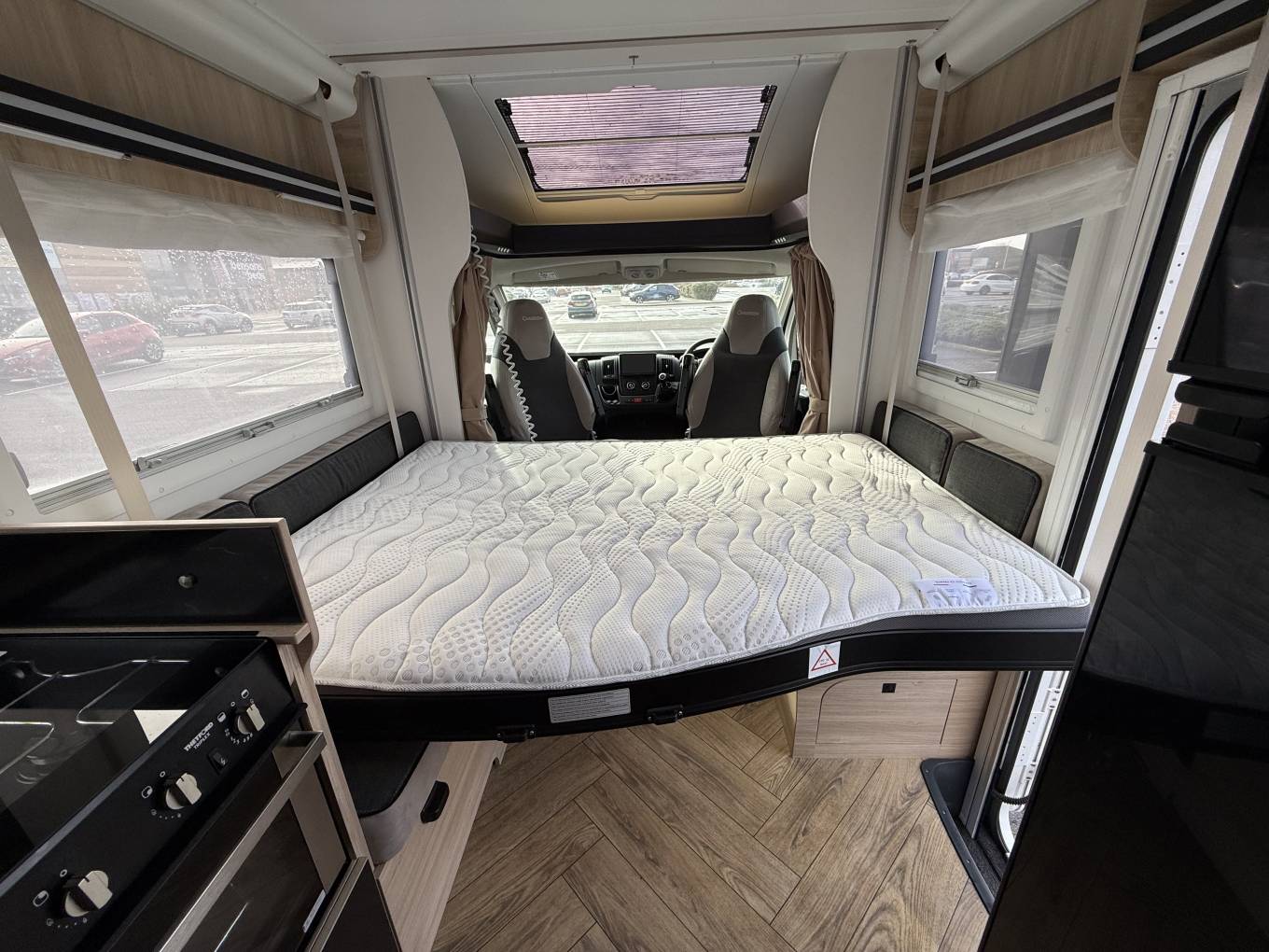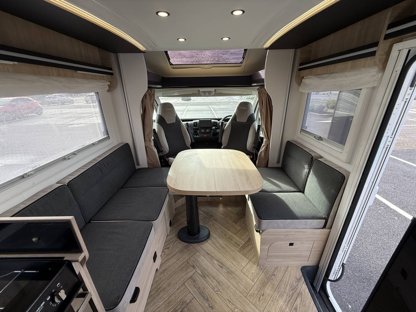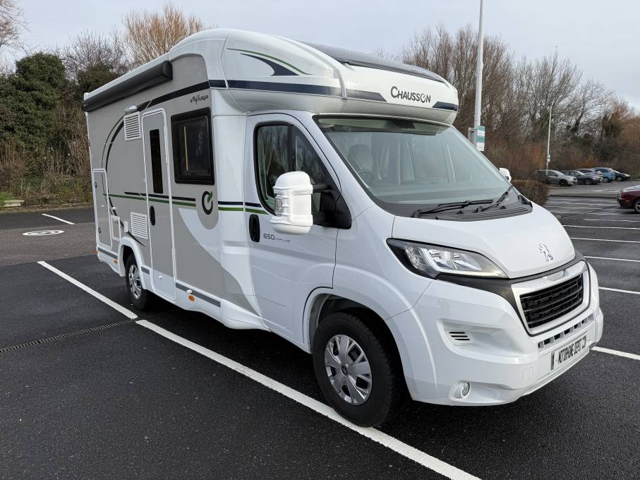 Chausson 650 Etape Line, 4 Beth motorhome with End Bathroom, Garage and Electric Drop Down Bed. This motorhome is built on the Peugeot Boxer chassis, it was registered in April 2025 with one owner, 1,836 miles on the clock and is in immaculate condition. At the rear is the bathroom with separate shower compartment and in the centre there is a well equipped kitchen. At the front is the lounge area with adjustable table, captains seats and above this is the electric drop down bed. It comes with Cab Air Con, Cruise Control, 4 Seat Belts. DAB Radio, Rear Camera, Gas Low System, Blown Air Heating, Canopy Awning, TV, Solar Panel, Outside Shower and BBQ Point. A stunning motorhome available for viewing by appointment in Blackpool. Call for more photos, videos and information.