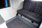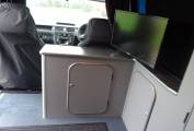The Camper is fitted out with rear seating/Rock N Roll Bed and has diesel heating for overnight coziness. Off grid capability is powered by a 12v split charger battery system. Spot lighting - USB Points and 12v Sockets. There are lots of storage cupboards and a TV. There are slide doors on both sides of the Camper making it ideal for photography and views.