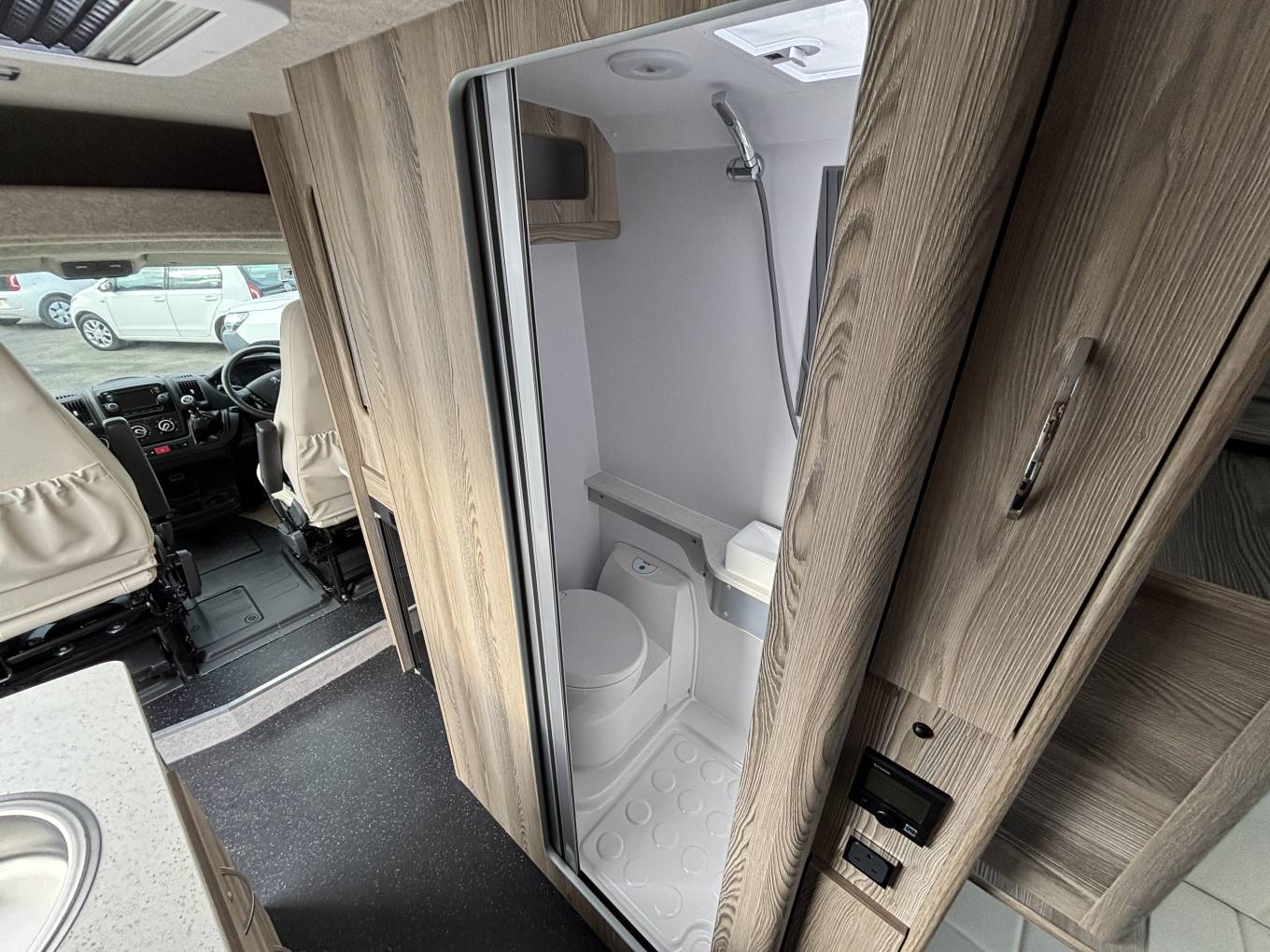 The modern kitchen area is fully equipped with an oven, sink, and a fridge/freezer, making it easy to enjoy home-cooked meals on your travels. You’ll also love the private wet room bathroom with toilet, bringing hotel-style convenience to your adventures.