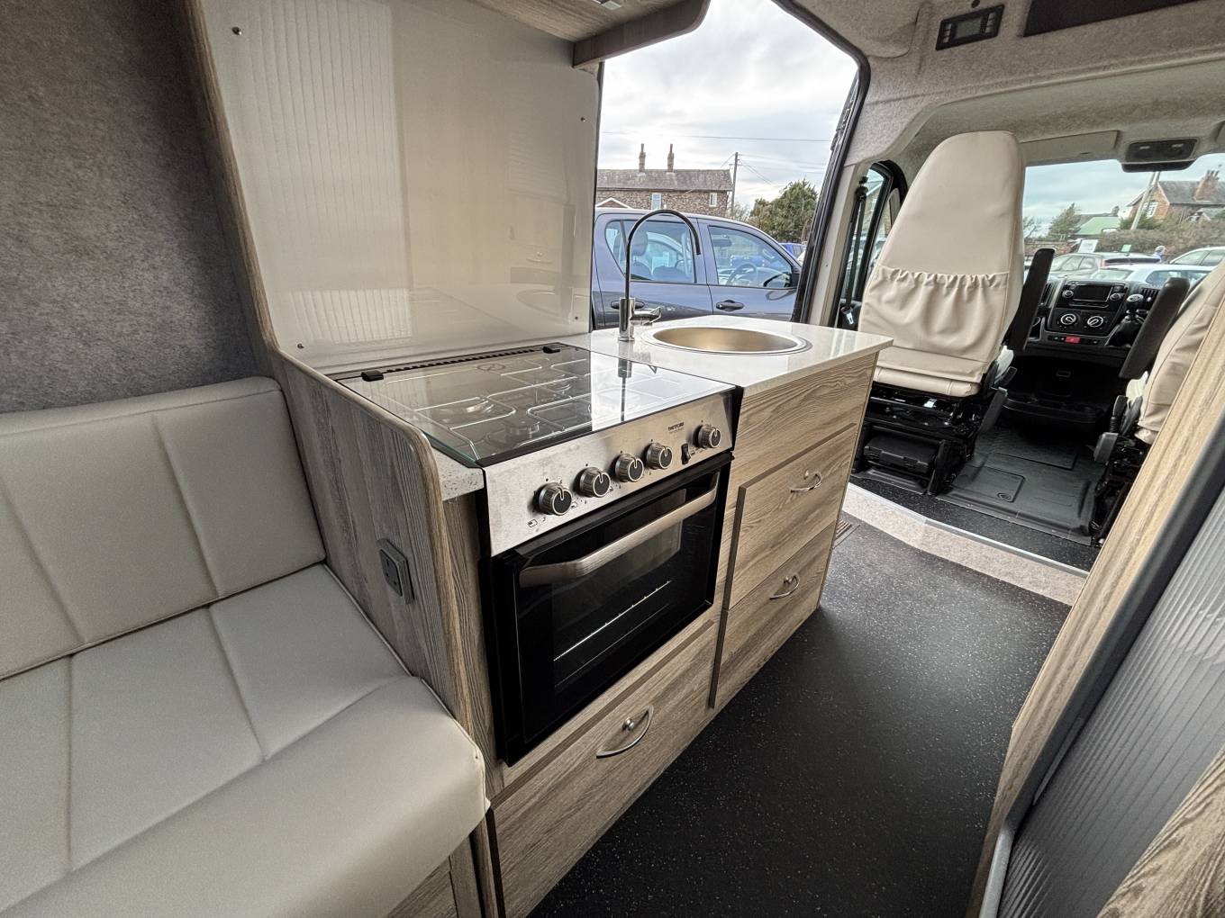 Step into luxury with this beautifully converted Peugeot Boxer campervan, designed for those who want comfort, space, and style wherever the road takes them. This high-spec campervan offers a large, open living area with a clever layout that transforms into a comfortable bed, giving you the best of both worlds – relaxing by day, restful sleep by night.