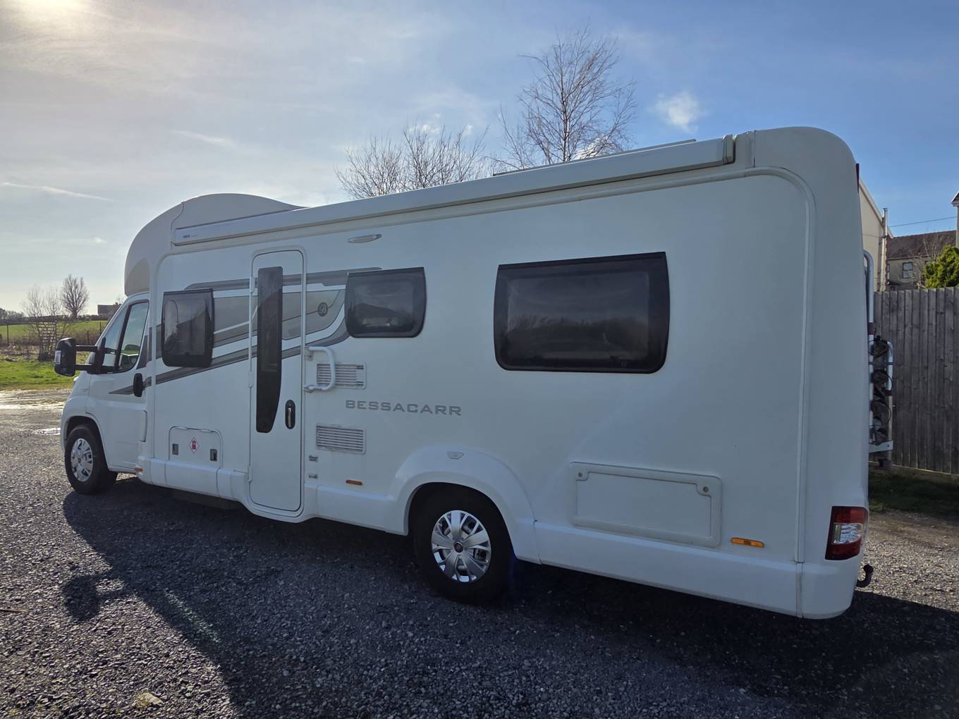The extras on this motorhome includes a bike rack, TV, 2xTables and a solar panel.