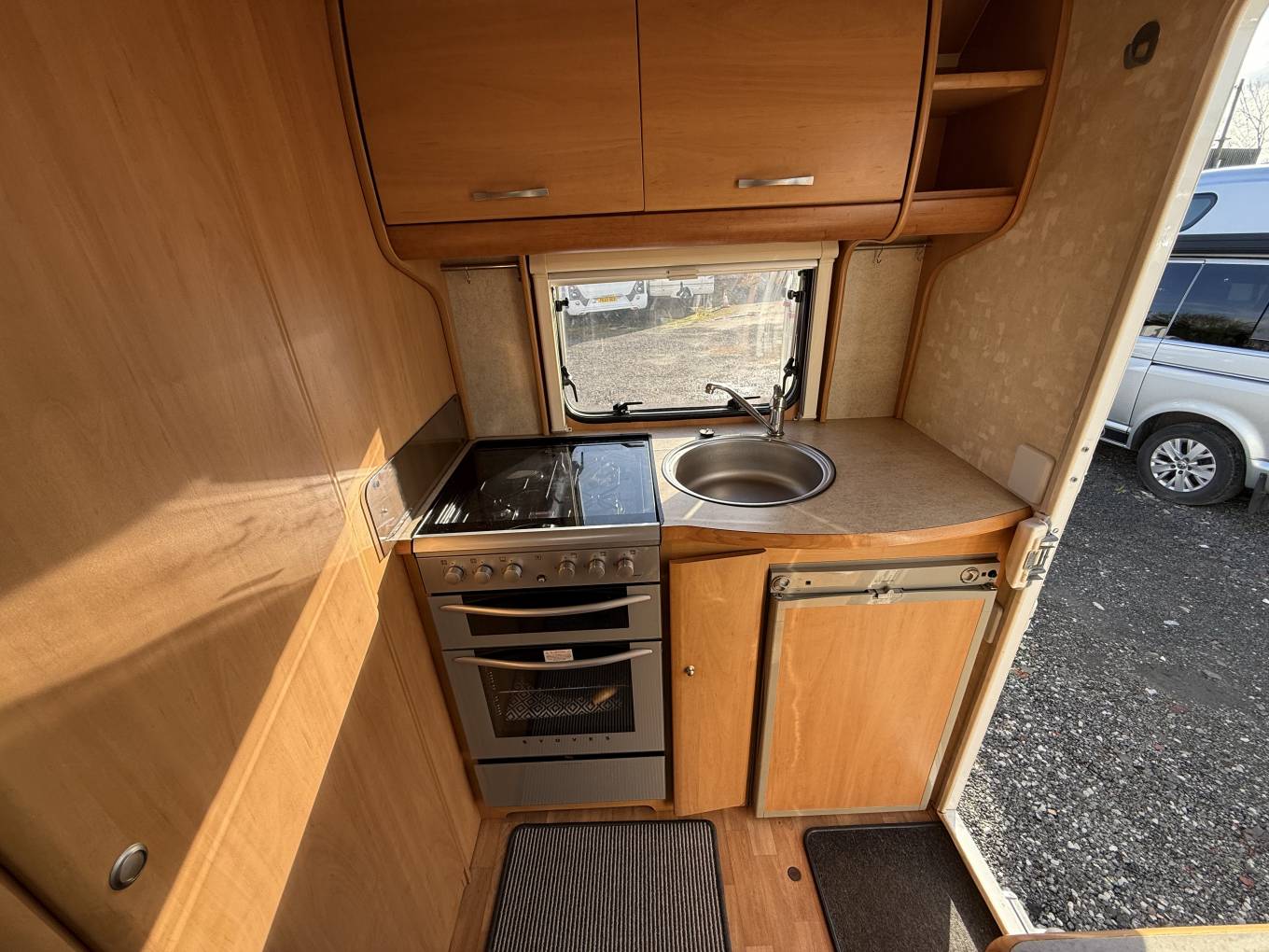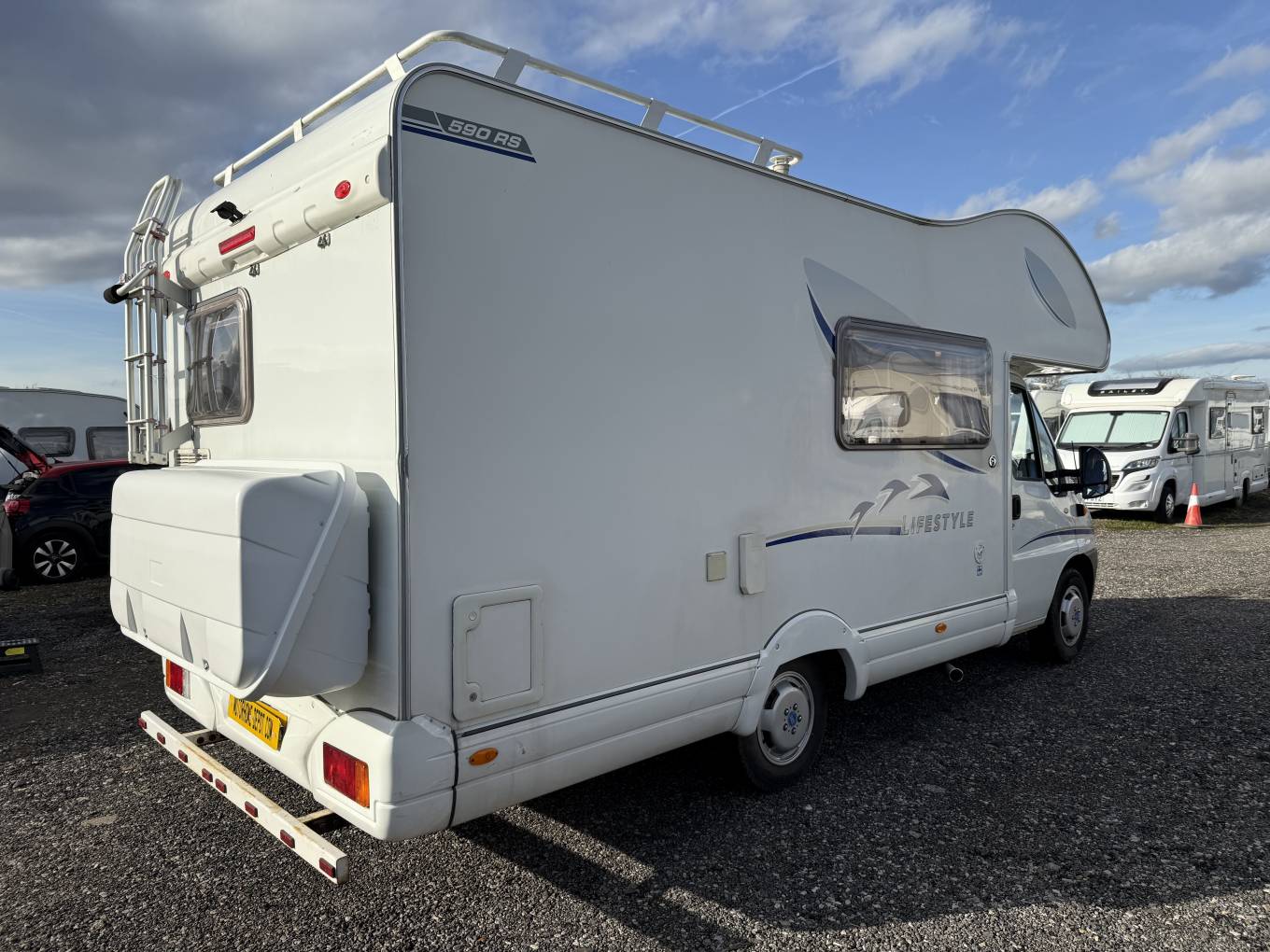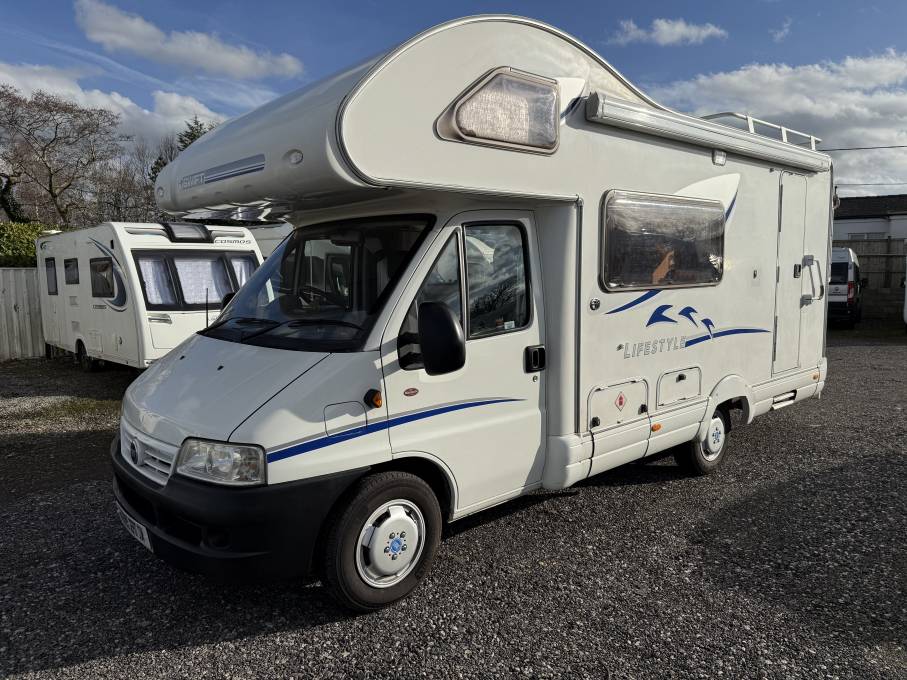 Swift Lifestyle 590RS, 5 Berth with End Kitchen and Over Cab Bed. This motorhome is the same model as the Swift Sundance 590RS, it is built on the Fiat Ducato chassis with 2.3 engine and has been well maintained with last service and new cam belt last year. At the rear is the kitchen and next to this is the bathroom, in the centre is the lounge area, which is spacious and airy, with a dinette and long bench seat. There is a large double bed over the cab and plenty of locker and a wardrobe for storage. It comes with 4 Seat Belts, Immobiliser, Central Locking, CD Radio, Blue Tooth, Canopy Awning, Rear Ladder, Roof Rack, Back Box, Electric Step and Tow Bar. Available for viewing by appointment in Southport, call for more photos, videos and information.