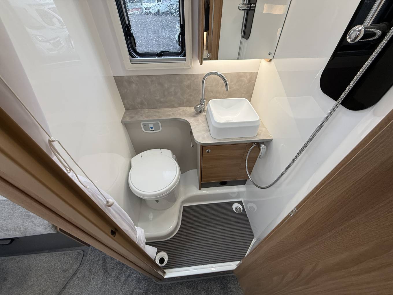 Additions to the motorhome is a Visionplus digital aerial, a powerful solar panel, concertina cab surround blinds and reversing camera. There is access from either side to a useful large locker running across the entire width of the motorhome at the rear.