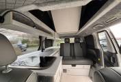 This camper offers a practical 4 berth layout with 4 belted seats, making it ideal for families or couples who want extra space. Inside, you’ll find a well-equipped living area including a grill, microwave and sink – perfect for cooking on the go. The pop-top roof provides a spacious top bed, giving great headroom and comfortable sleeping space.
