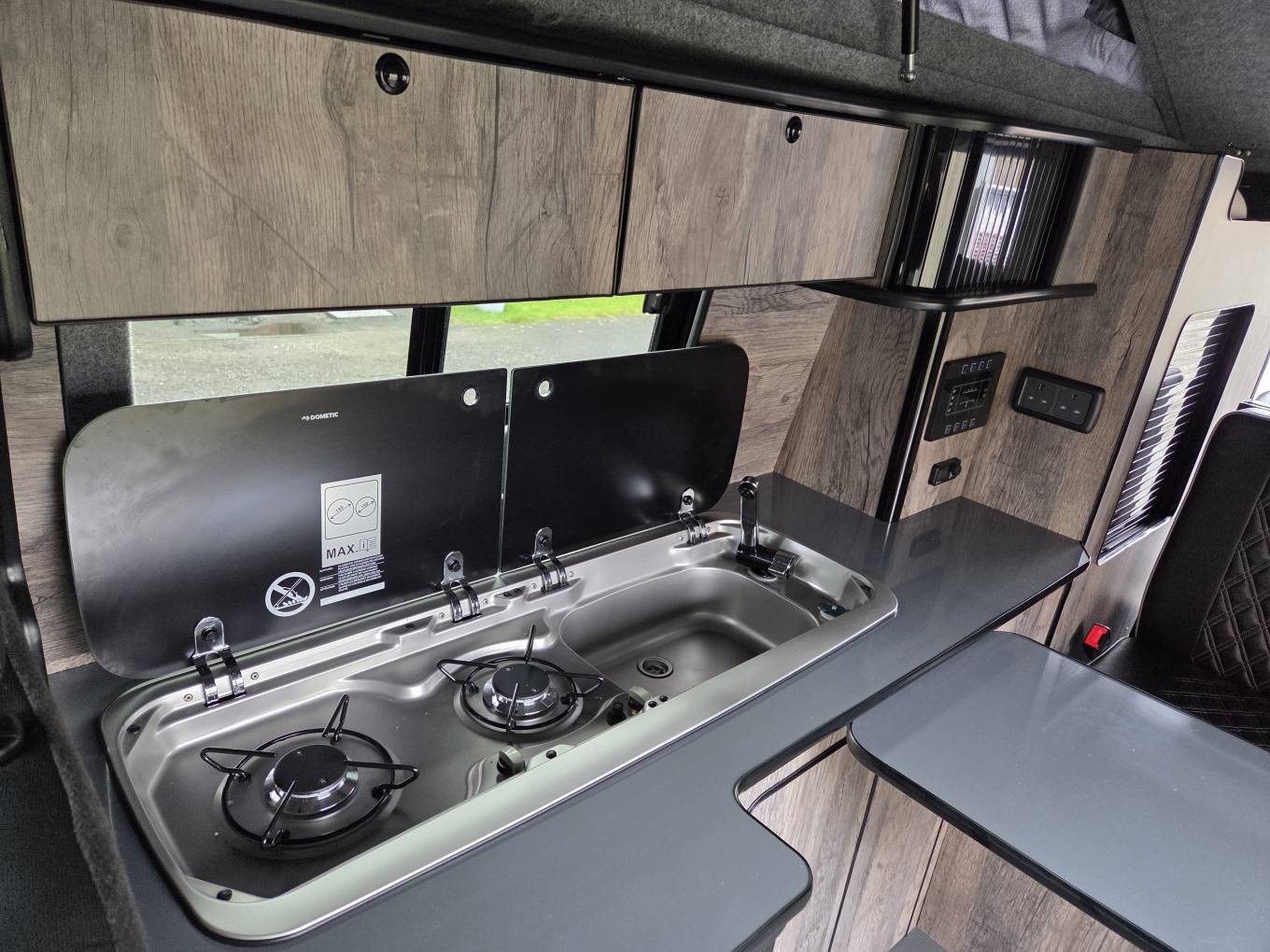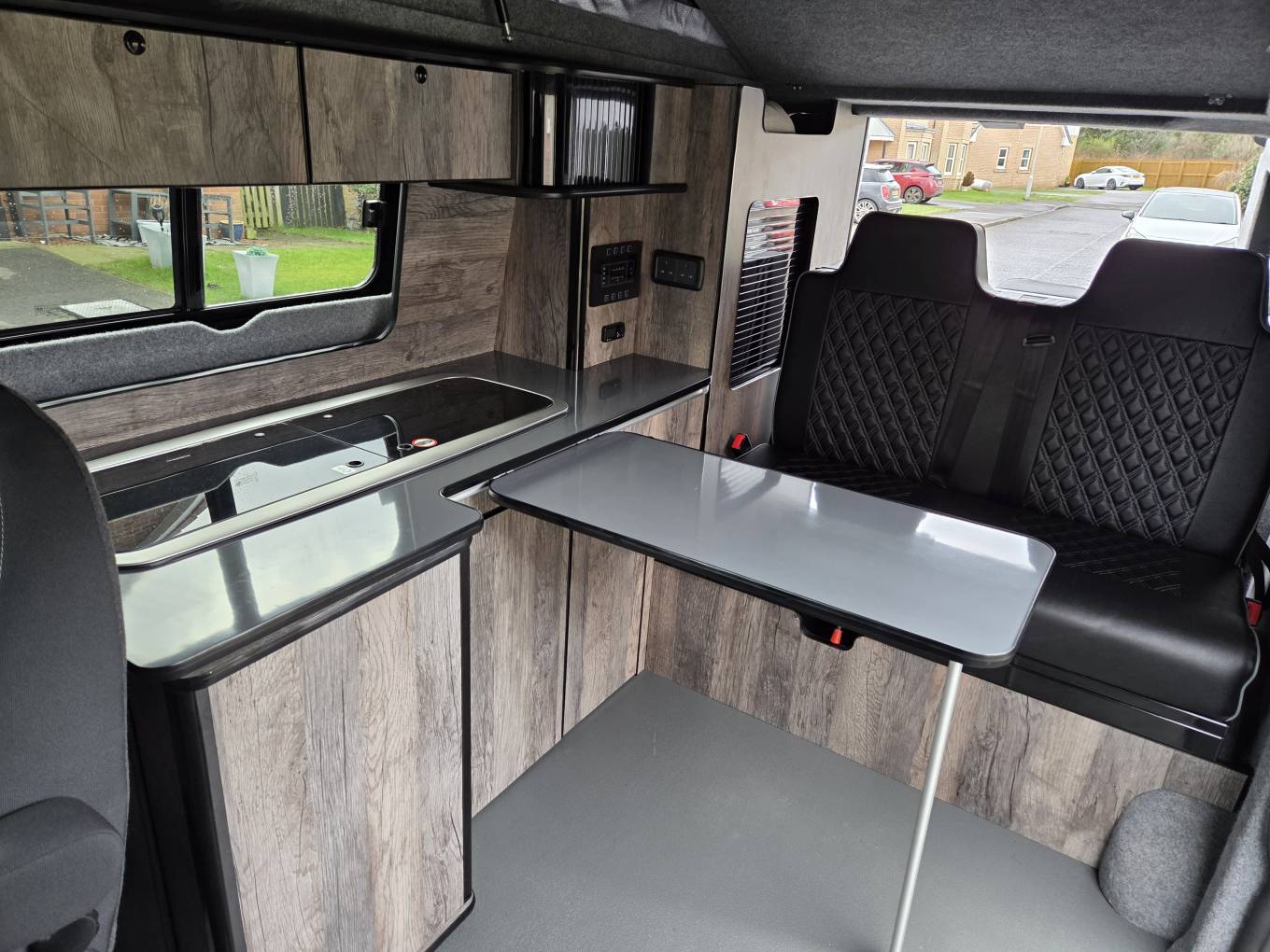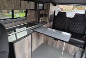 Fit Out: Tasteful conversion by Route 300 Campers, Irvine, Ayrshire. Flooring, fixtures, fittings and fabrics all provide a high quality feel.