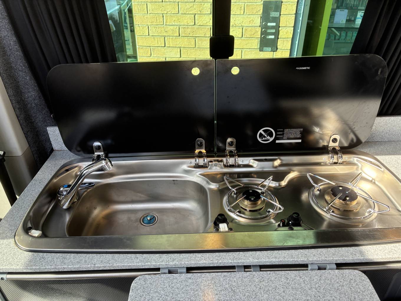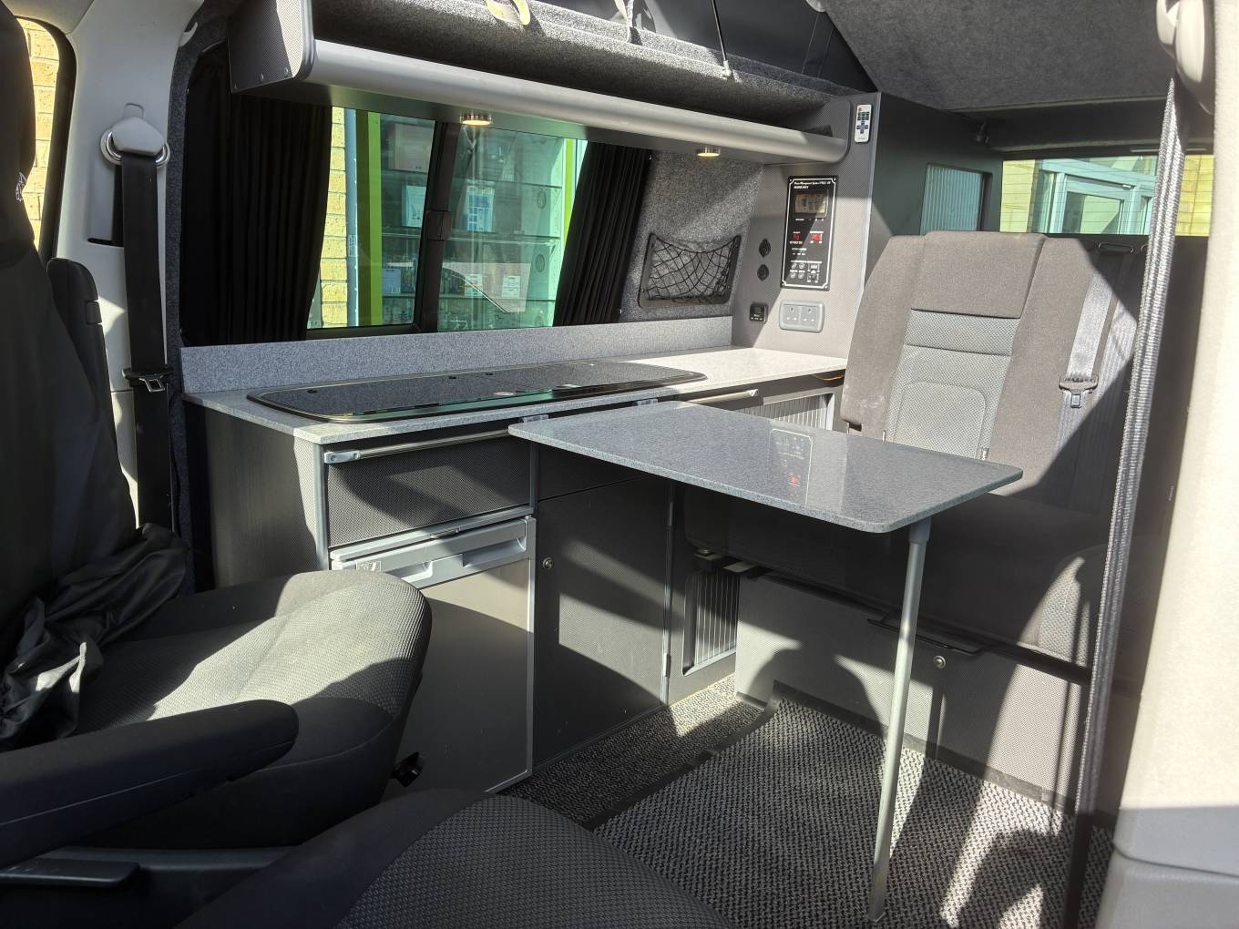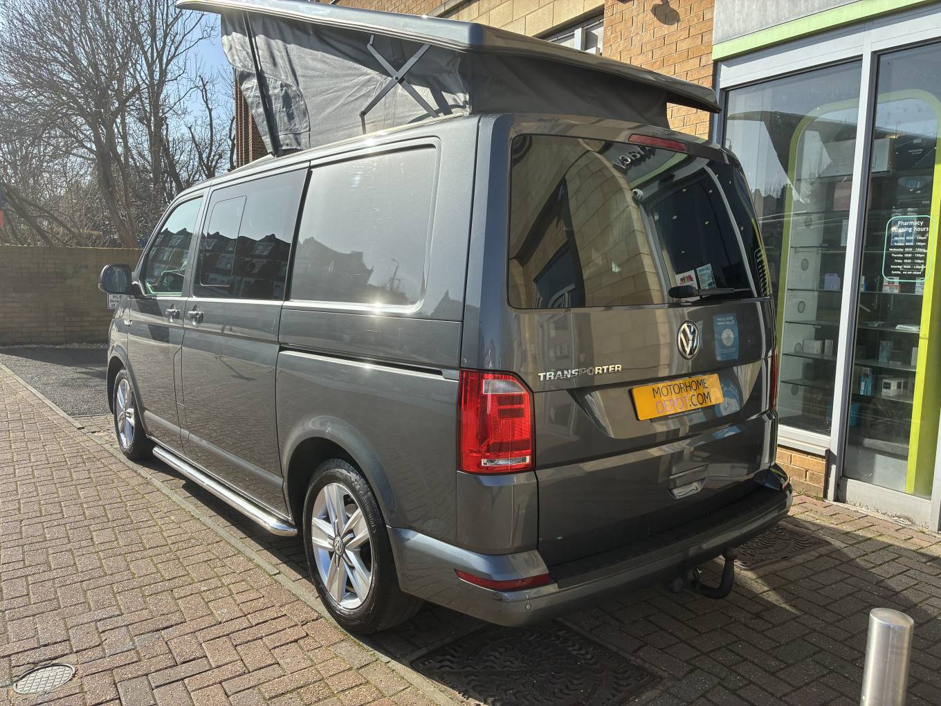 MOTORHOME DEPOT RICHMOND-UPON-THAMES are pleased to bring you this Euro 6 2019 VW Transporter T32 SWB 204BHP HIGHLINE | HIGH SPECTED CAMPER | Desirable DSG / Automatic Transmission | MOORES CUSTOM CAMPERS CONVERSION TOP SPEC | Chrome side bars | Alloy Wheels | One Owner | SOLAR | 500W INVERTER | EBERSPACHER DIESEL HEATER | Quality RIB Bed | Dometic 2 gas burner hob with rising smoked glass lid over | sink with cold tap with rising smoked glass lid over | Dometic fridge/freezer | 240v/12v | 240 EHU Lead | USB points | Removable dining table | Marble effect work surfaces | plenty high & low level storage including under bed area | Camping accessories included comprising of table & chairs - kettle - awning | Detachable towbar | All ready to go for your Spring camping trips away