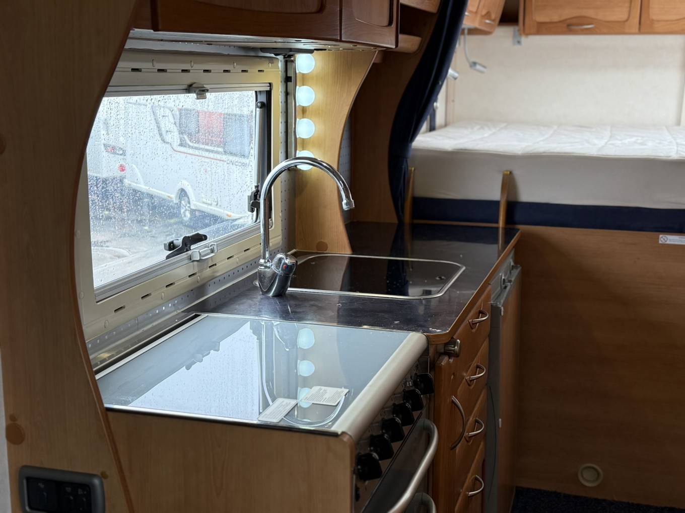 The living area offers plenty of seating and dining space, with flexible sleeping arrangements for up to seven. To the rear you’ll find a washroom complete with shower, providing everything needed for longer trips away.