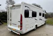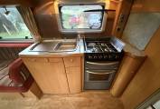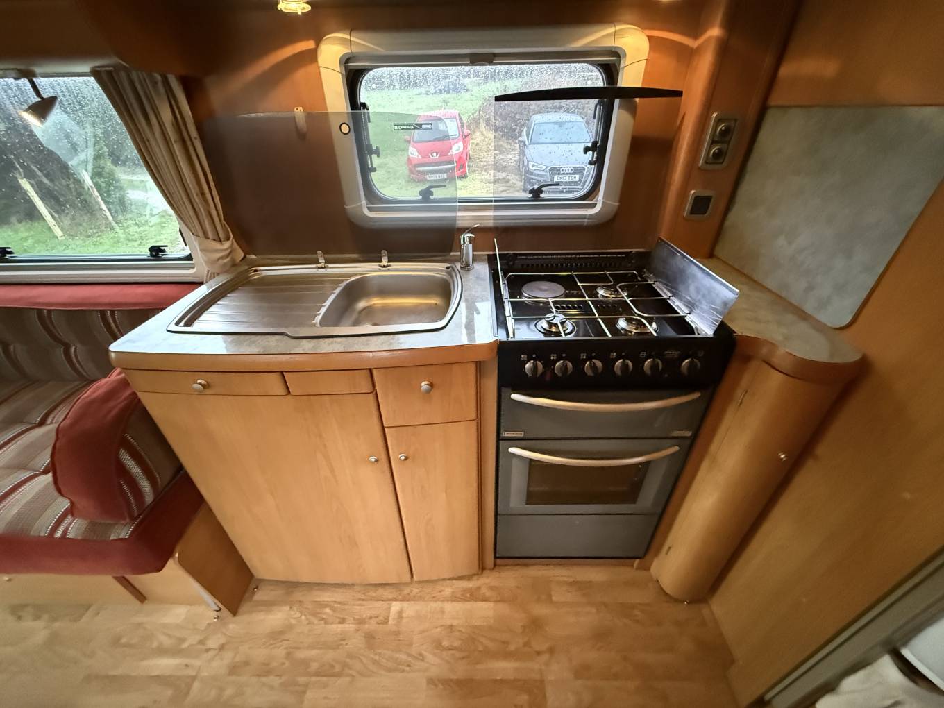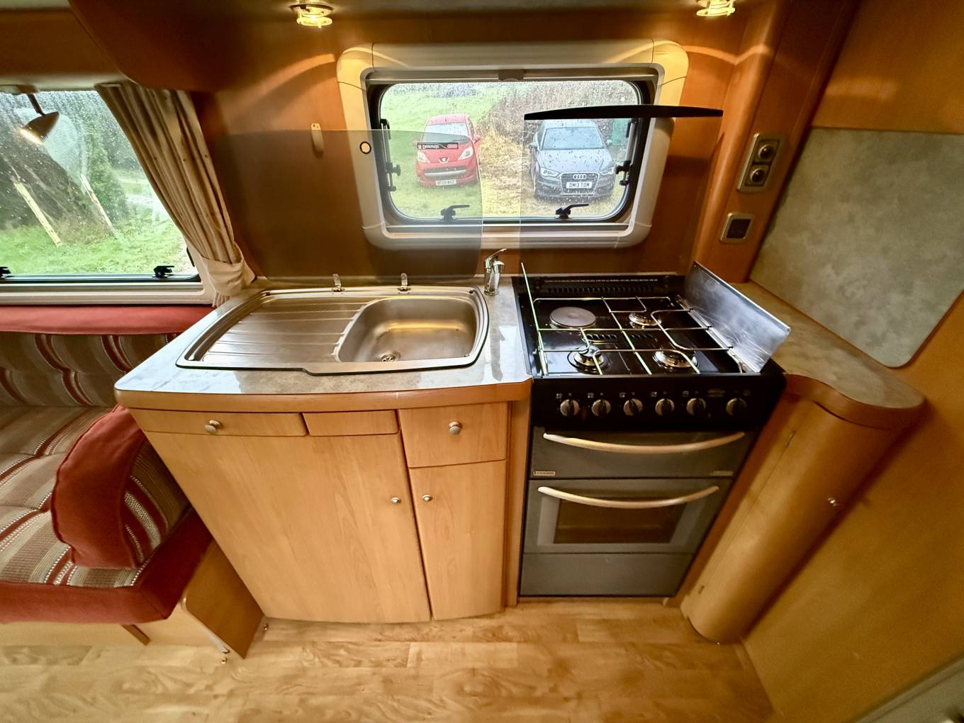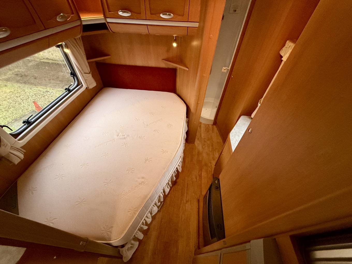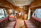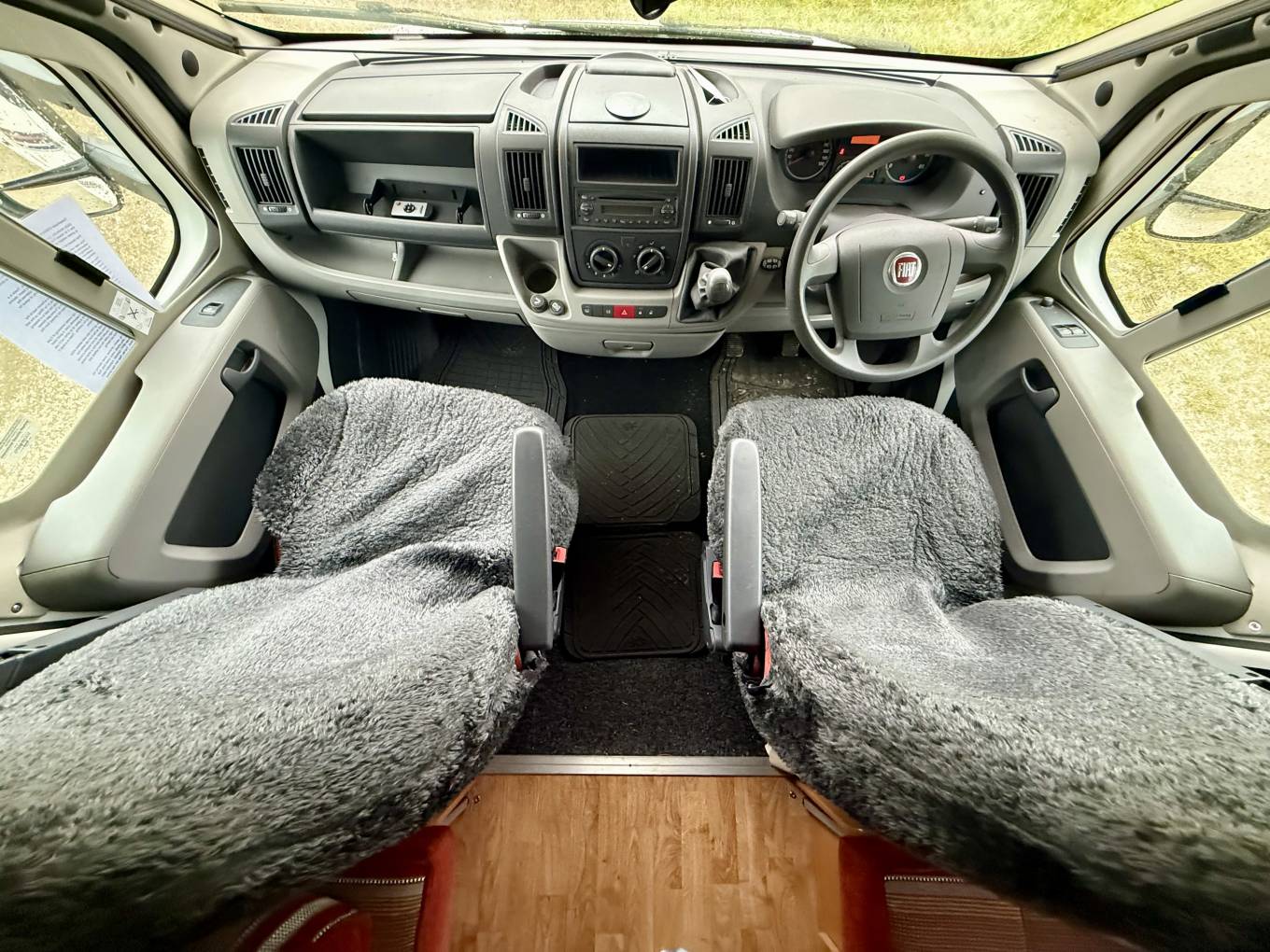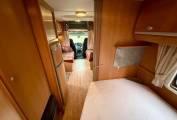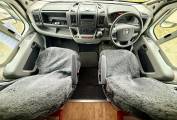 At the rear of the motorhome you will find the practical washroom complete with separate shower, Thetford toilet with electric flush, wash basin with mixer tap, mirror and vanity storage. Moving forward there is a desirable fixed French bed with bags of storage including overhead lockers, under bed storage and a large wardrobe. The well equipped kitchen area features a full sized oven with 3 x gas hob and electric hot plate, sink with mixer tap and drainer, fridge with seperate freezer, microwav and plenty of storage. In the heart of the motorhome is the light and airy dinette area. With 2 side facing sofas, 2 captain swivel seats and a removable table there is plenty of room to dine comfortably or sit and relax. As the night draws in this area quickly and conveniently converts in to a double bed. Finally there is an overcab double bed for extra sleeping space or storage.
