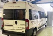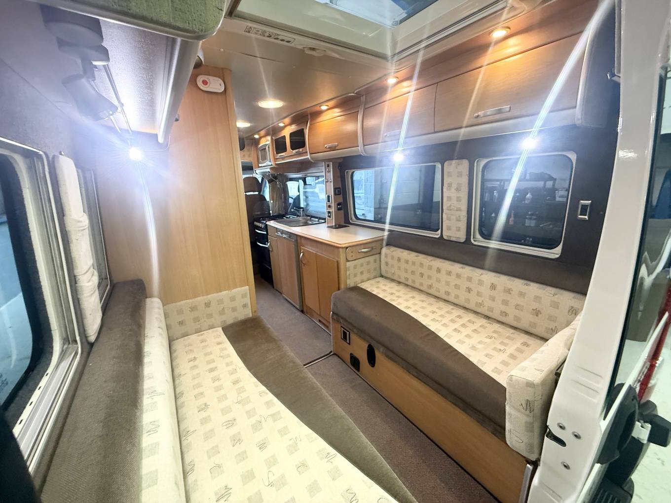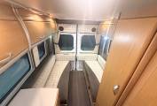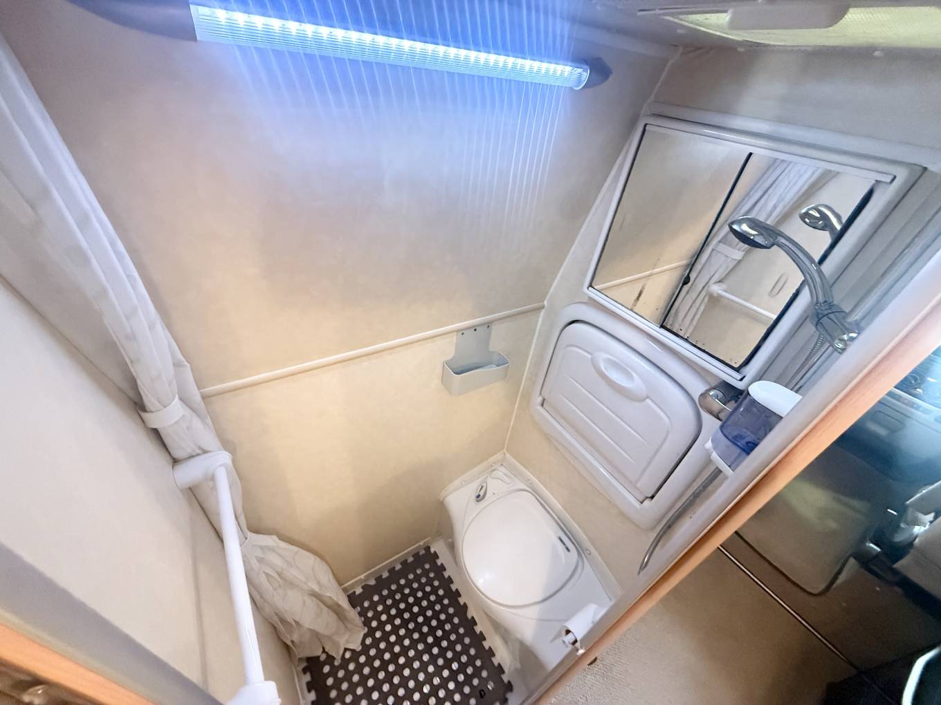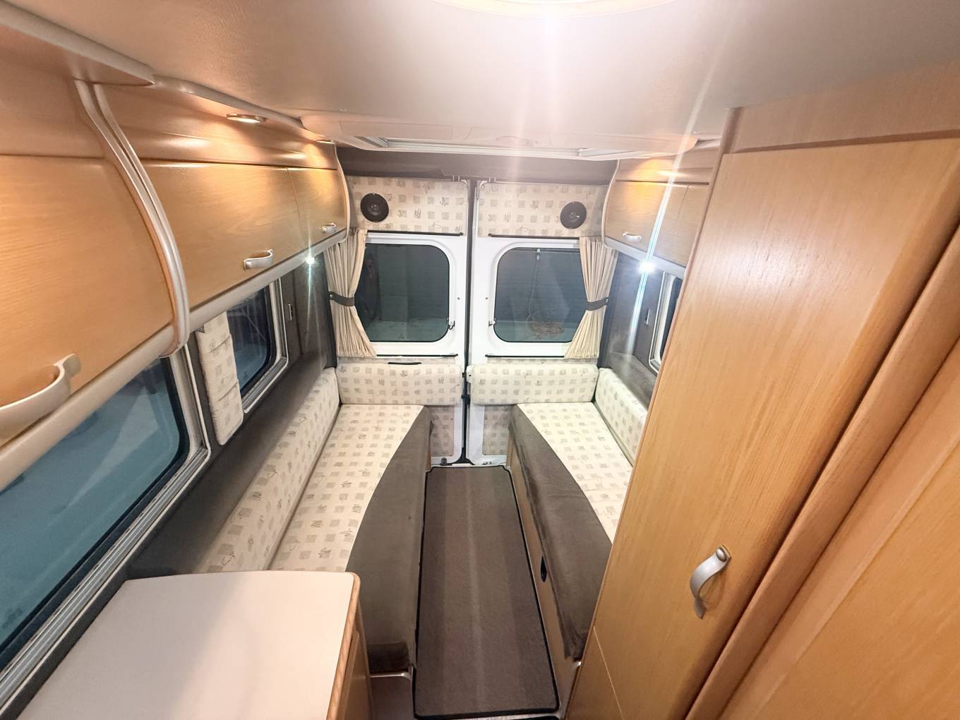 Upon entering the vehicle on the nearside sliding door, you are greeted with access to the cab with 2 belted seats, washroom to your right and the kitchen in front of you, leading to the comfortable rear lounge. This vehicle is the ultimate compact 2 person vehicle, and all the comforts of home, yet easy to park and navigate round country lanes. There is also plenty of storage space to house all your clothes, bedding and equipment. The rear lounge has a cosy feeling, benefitting from comfortable fabrics and the level of finish set this motorhome apart from others in its class. The central kitchen comes complete with oven, hob, fridge/freezer, microwave and sink/drainer. Opposite the kitchen area is a well equipped washroom with shower, Cassette toilet and wash basin. Above the shower is a roof light which gives extra ventilation and light. Curtains and blinds fitted in the body of the vehicle. Once inside, you can't help but notice the full run of windows down the side of the vehicle - making it feel really open, yet from outside the tinting provides privacy.