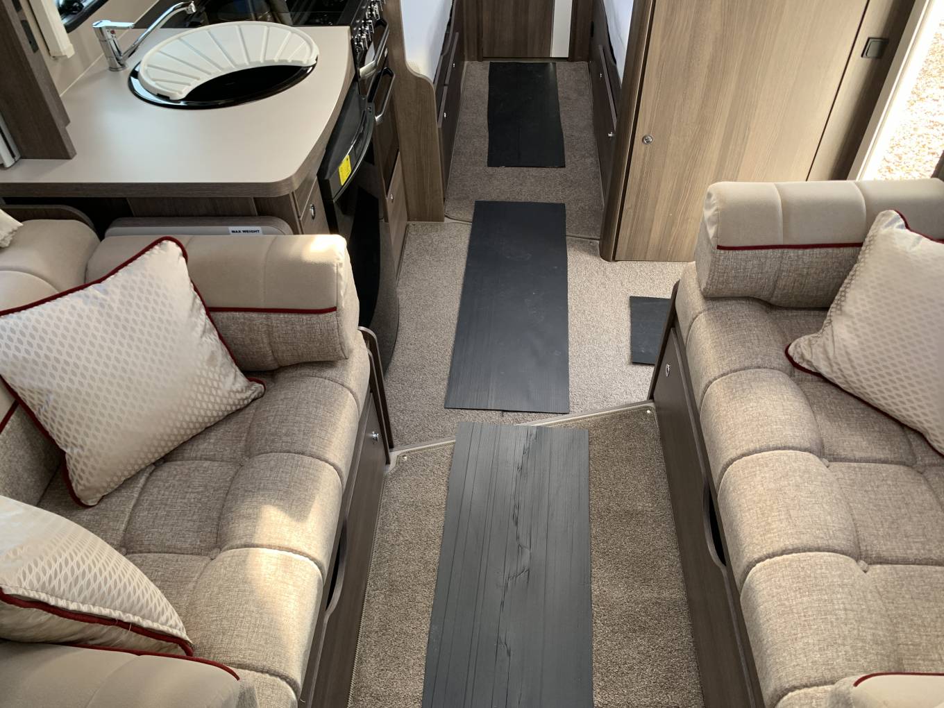 The lounge has side facing settees that effortlessly transform into a further double, the Aguti travel seats are hidden below.