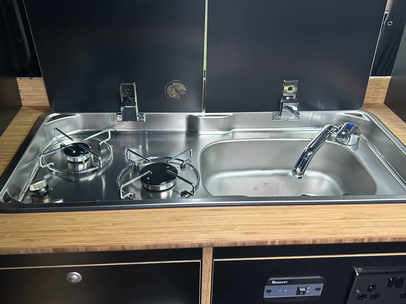 - HOB WITH 2 GAS BURNERS, 12V FRIDGE AND COLD WATER SINK