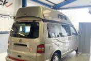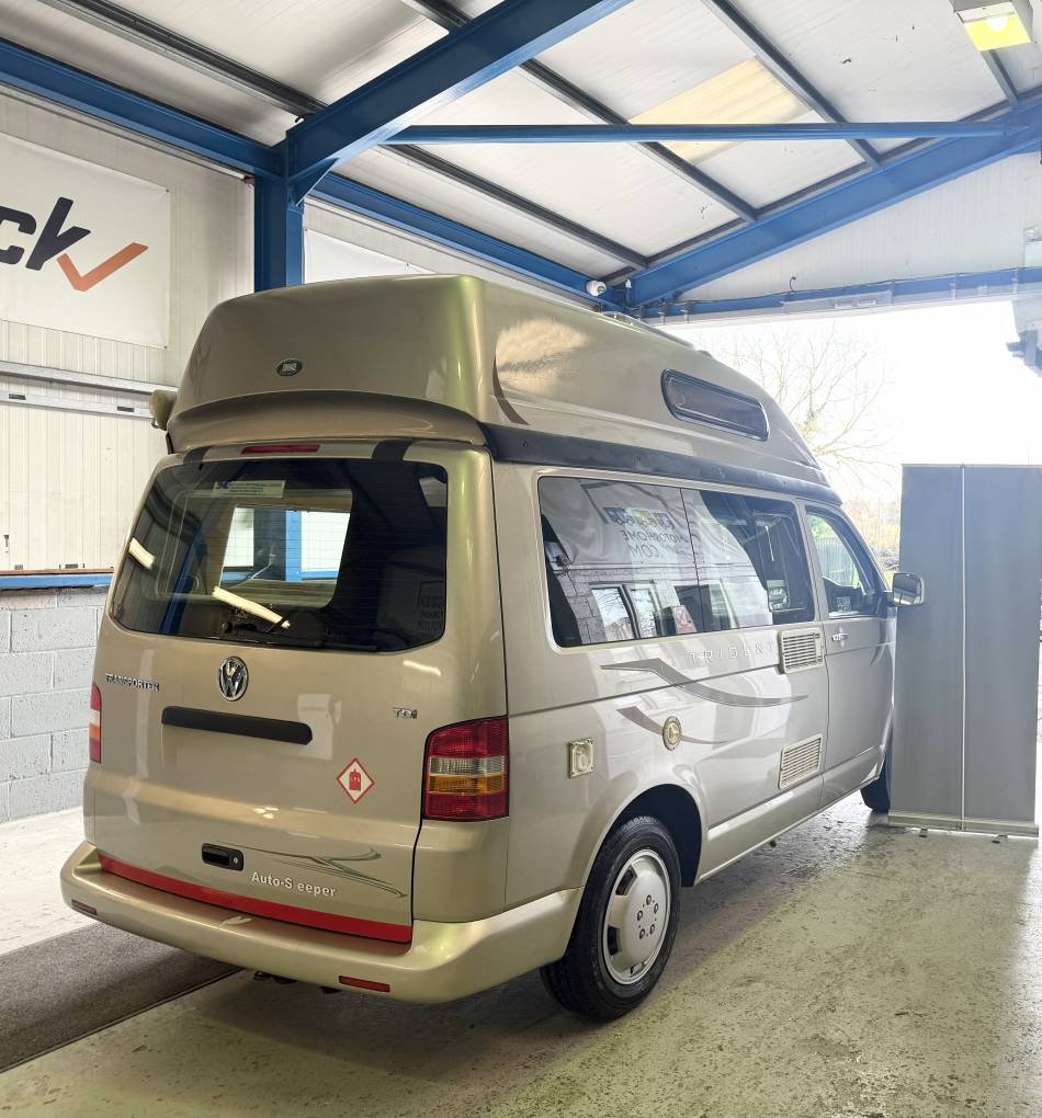 This iconic VW Autosleepers Trident T30 TDi 2005 model in deep metallic gold