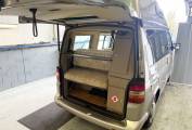 With the simple to use rear bench seat that slides forward to make a double bed in the evening the standard VW Camper works a treat especially on a lovely sunny day when the sliding door is open and the outside world is let in.