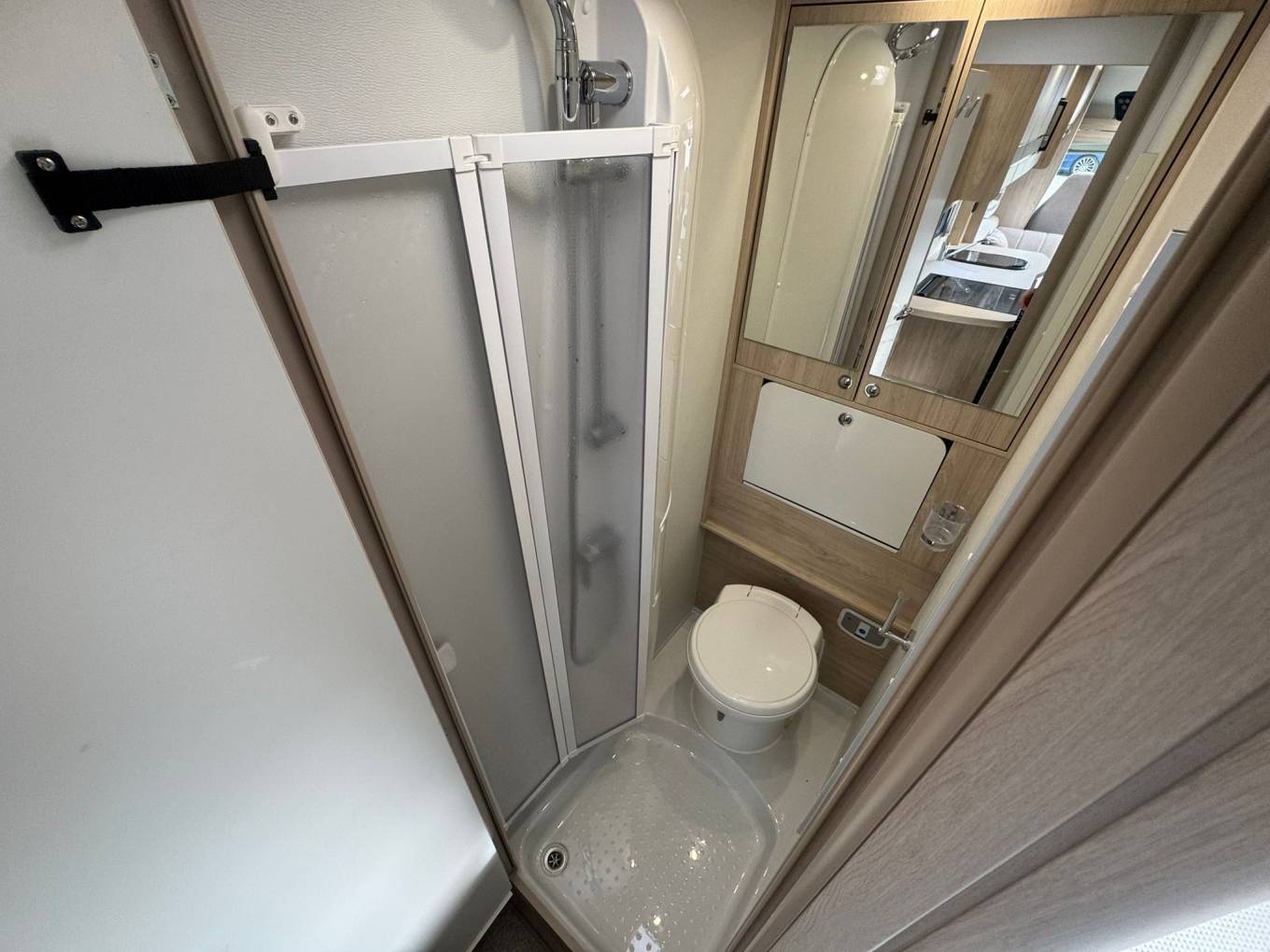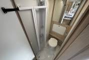 Towards the rear, you’ll find the popular French-style double bed with excellent storage throughout the vehicle. The washroom includes a combined toilet and shower, designed to make the most of the space without compromising practicality.