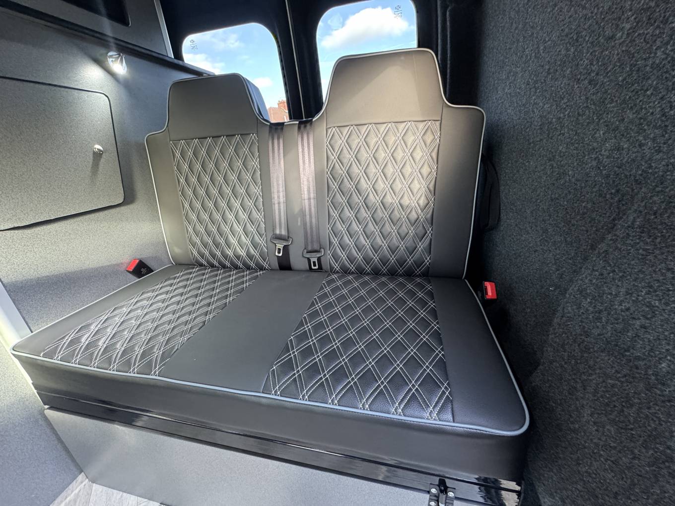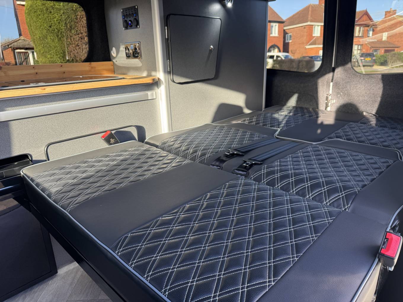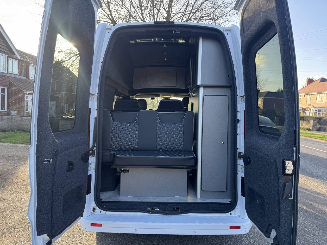 A standout feature of this camper is the impressive starry night effect ceiling, which creates a relaxing atmosphere inside the van during the evening. The quilted upholstery, modern cabinetry and stylish flooring complete the interior and give the van a premium feel.