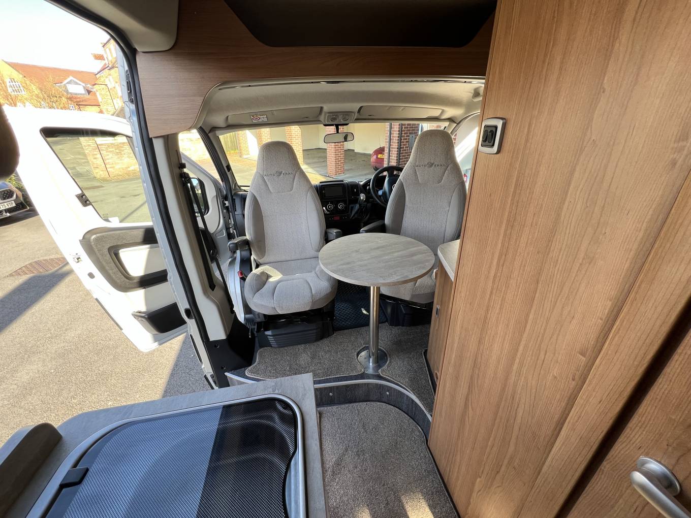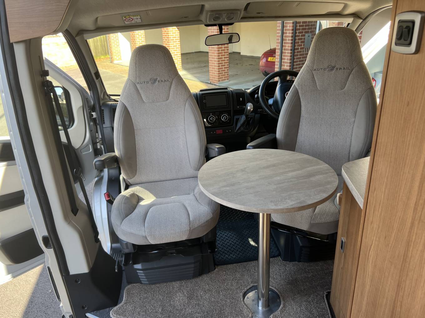 Upfront both seats swivel, there Comformatic automatic transmission and multimedia display including navigation, rear camera, radio and Bluetooth, with Remis blinds surrounding