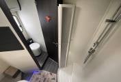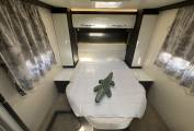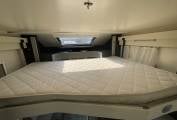 Starting in dining area we have plenty of room for 5 to dine thanks to the two swivel captains chairs which are not only comfortable for long journeys but also when relaxing. The bench in the dining area also features two additional travelling seats complete with 3 point seatbelts meaning four can travel in comfort and safety. Above the dining area is an electrically operated drop down bed which means no more messing around each night to make the second bed, it can be left made up and simply raised and lowered as needed. Moving rearward we have the well equipped kitchen area complete with a sink with mixer tap, three burner hob and combination oven and grill along with a huge fridge which features a pull out drawer for drinks and a large freezer compartment. Just behind the kitchen is the split washroom and shower, the separate shower cubicle is a great size and the washroom features a wash basin, cassette toilet, mirror and storage. At the rear of the vehicle is the large island bed which is flanked by storage wardrobe and can also be lifted to give access to additional internal storage, beneath the rear of this island bed is a large storage garage which has external access lockers on both sides.
