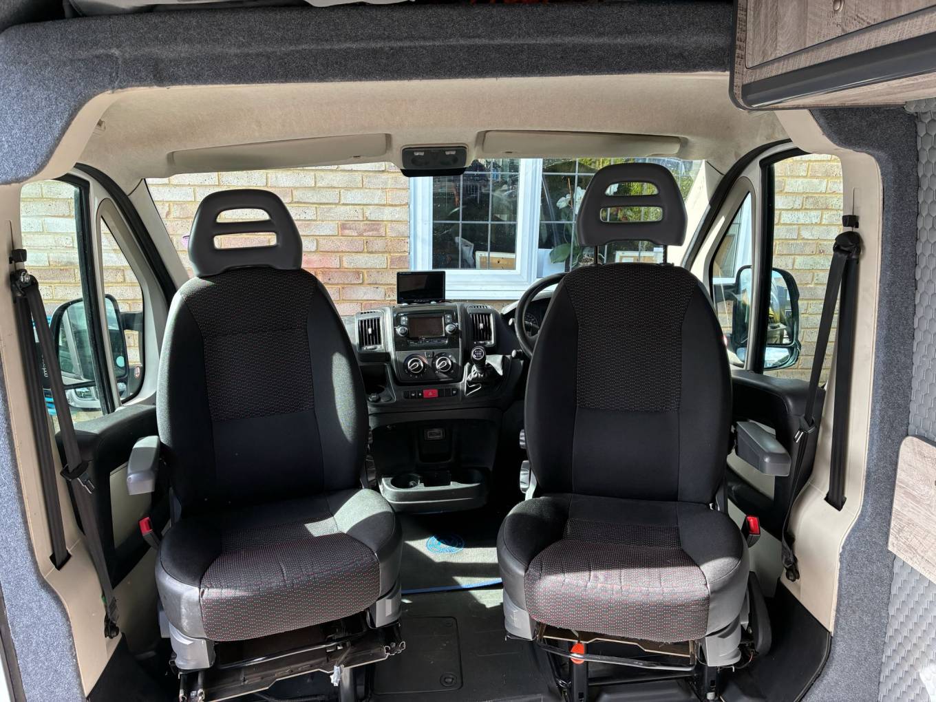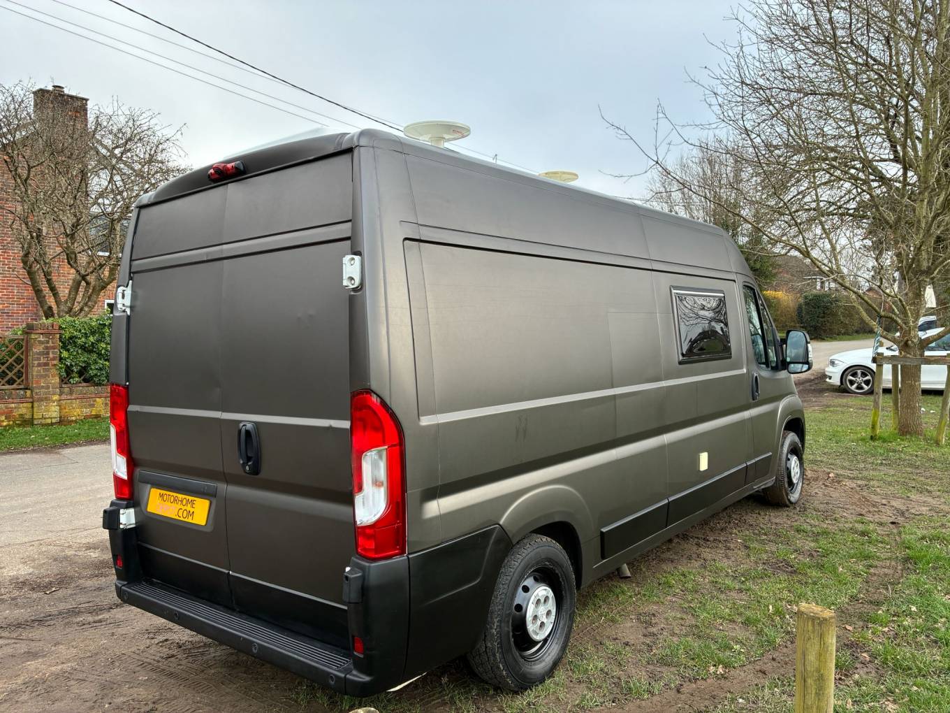 MOTORHOME DEPOT RICHMOND-UPON-THAMES are pleased to present this 2018 Peugeot Boxer 335 Pro | only 61,000 miles | 6 Speed | MoT until 30/10/26 | extensive service history (2021-2025) | V5 states "grey" however looks more bronze/brown in colour after wrap | mid-grey wall & roof interior coverings | light wood storage cupboards | LED lighting | VICTRON electrics (App required) | 2 x solar panels | 2x leisure batteries | USB points | 240v/12v | Sat-Nav | 3 x sets keys | swivel Captain seats | 4 x seatbelts | refillable LPG gaslow | rear lounge which makes into double bed | removable dining table with 2 x anchor points | 3 x gas burner hob | sink with hot & cold water mixer tap & glass lid over | fridge | Truma Combi (E) heating | TV (never been used) | washroom/wet room consists of cassette toilet & shower with shower tray | fresh water and waste water under slung storage tanks | EHU lead | windscreen cover | concertina blinds |