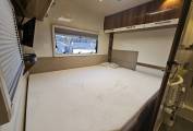 The layout provides four berths with two travelling seatbelts. To the rear is a fixed double transverse french bed positioned above a large garage, providing comfortable sleeping accommodation alongside excellent storage space. The central dinette and swivel cab seats create a comfortable lounge and dining area which can also convert into additional sleeping space.