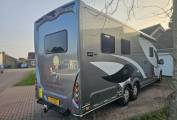 Additional equipment includes WiFi system, satellite TV system, reversing camera, tracker, onboard safe, tow bar, awning, oven, microwave, fridge and generous external storage.