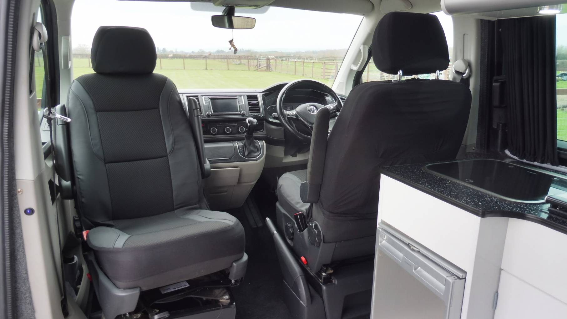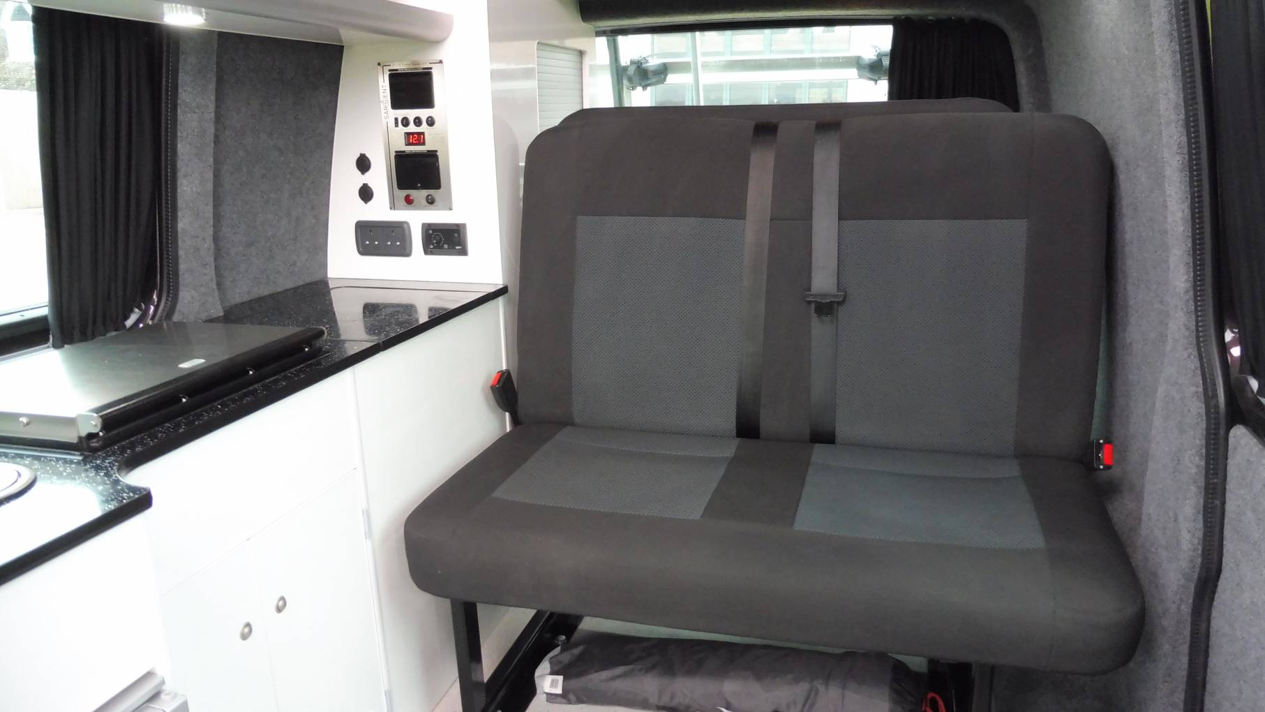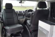 The front passenger seats both swivel allowing seating for four. Space under the bed has been left clear to allow the loading of large items such as surfboards.