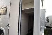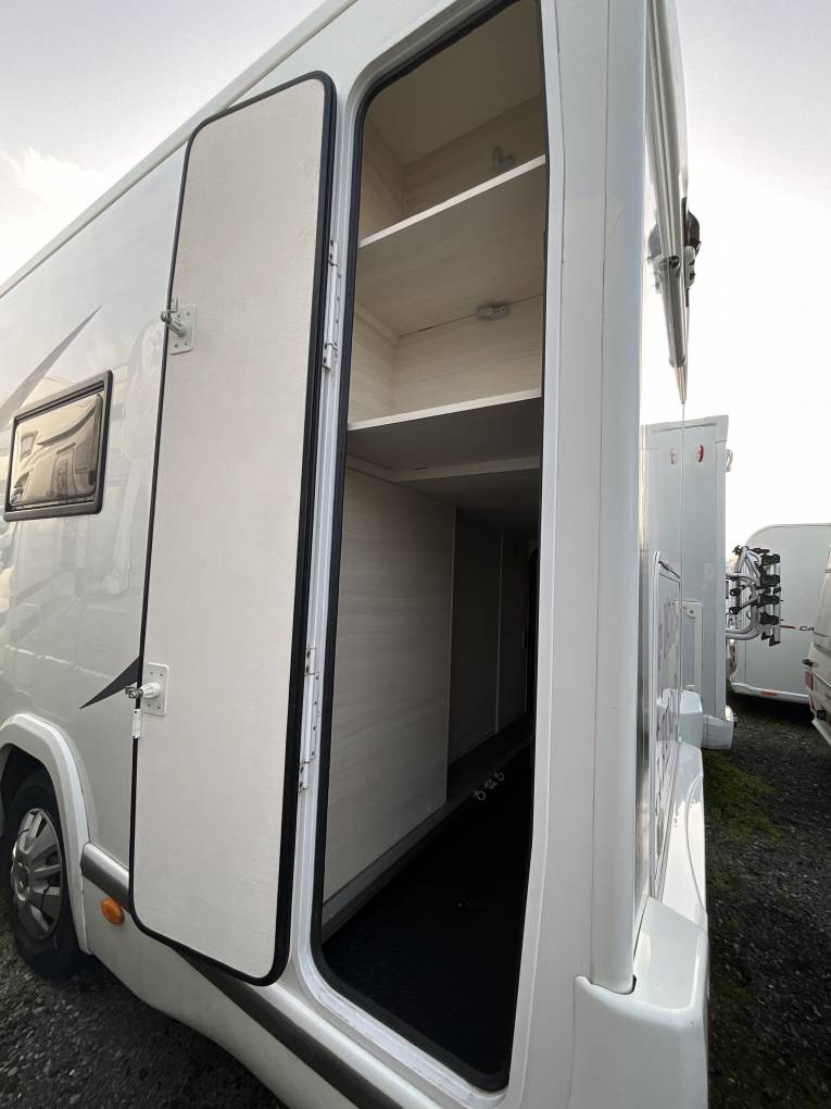 Outside includes three door all round access to the full width garage with 12v and mains power sockets, ski locker, external BBQ gas outlet, external shower point, rear parking sensors,120w solar panel, gas locker with a Gas Low refillable LPG system, reversing camera, wind out awning, toilet cassette locker, maintenance service locker and mains hook up point.