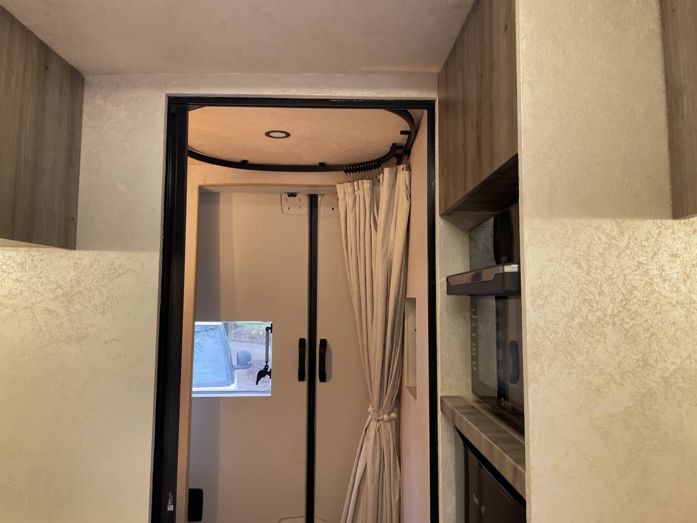 For comfort and self-sufficiency on the road, the van features a 105L fresh water tank and a 65L grey waste tank. It also includes full bathroom facilities with a 15L electric water heater, a water-saving shower, and a composting toilet.