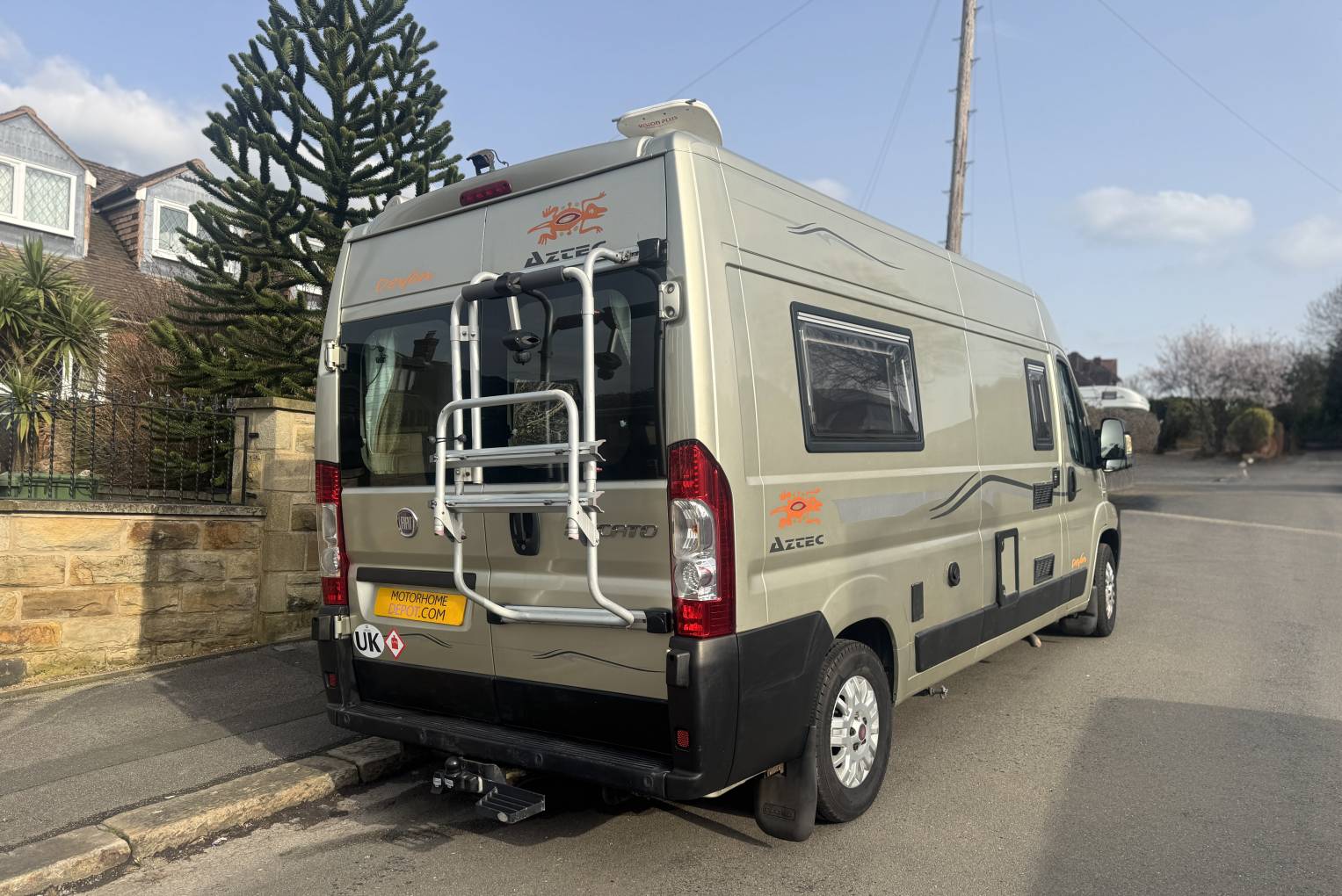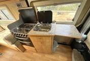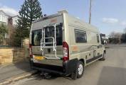 This campervan also benefits from a number of useful extras including a solar panel to help maintain the leisure battery, a wind out canopy providing sheltered outdoor space, a reverse camera to assist with manoeuvring, and a bike rack for carrying bicycles when travelling.