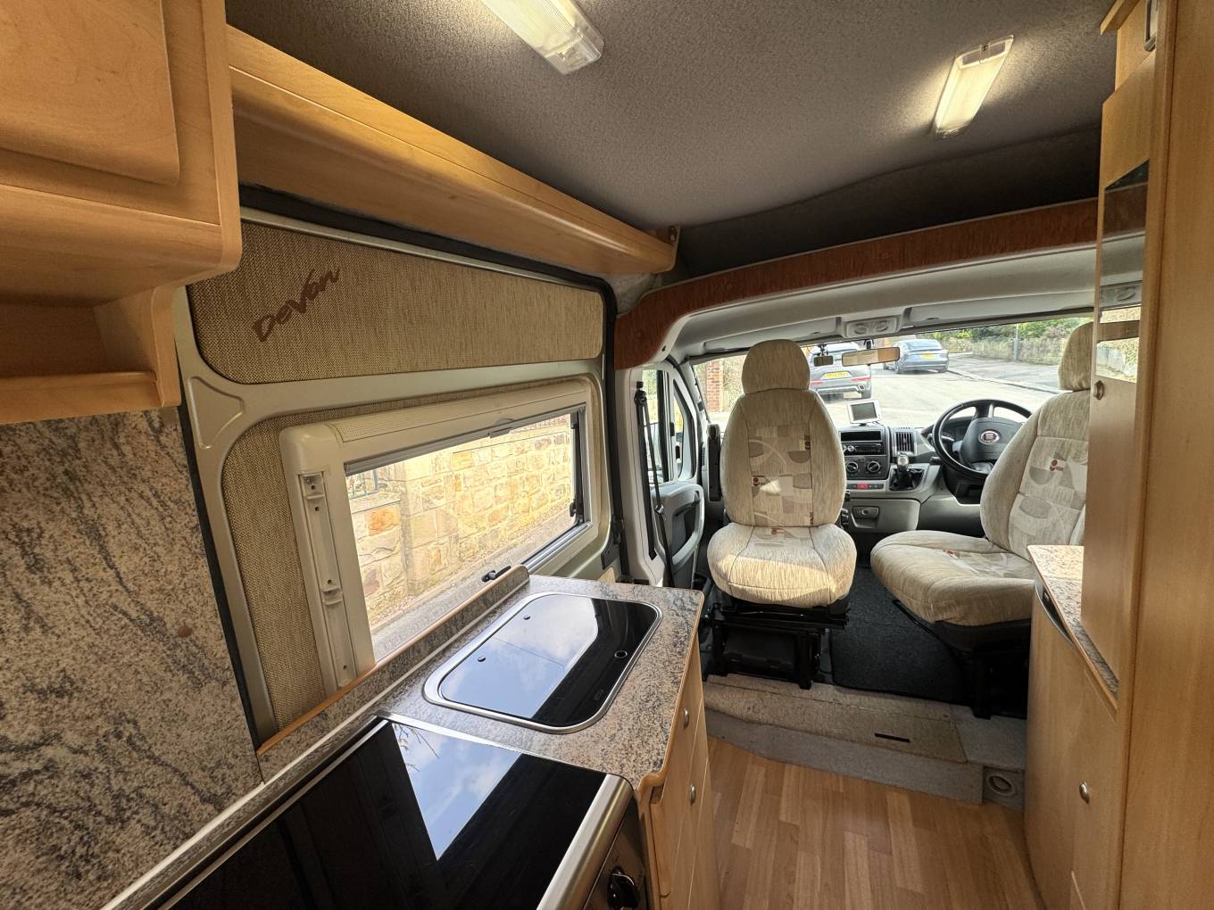 At the front of the vehicle the cab seats swivel to face the living area, creating additional seating and allowing the cab to become part of the living space when parked.