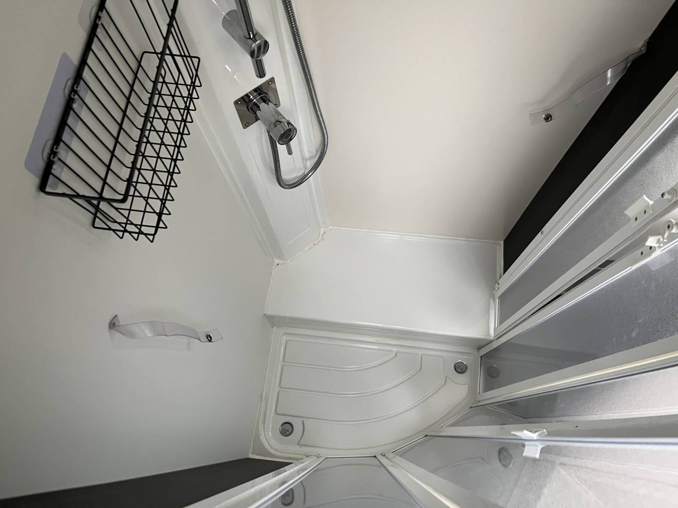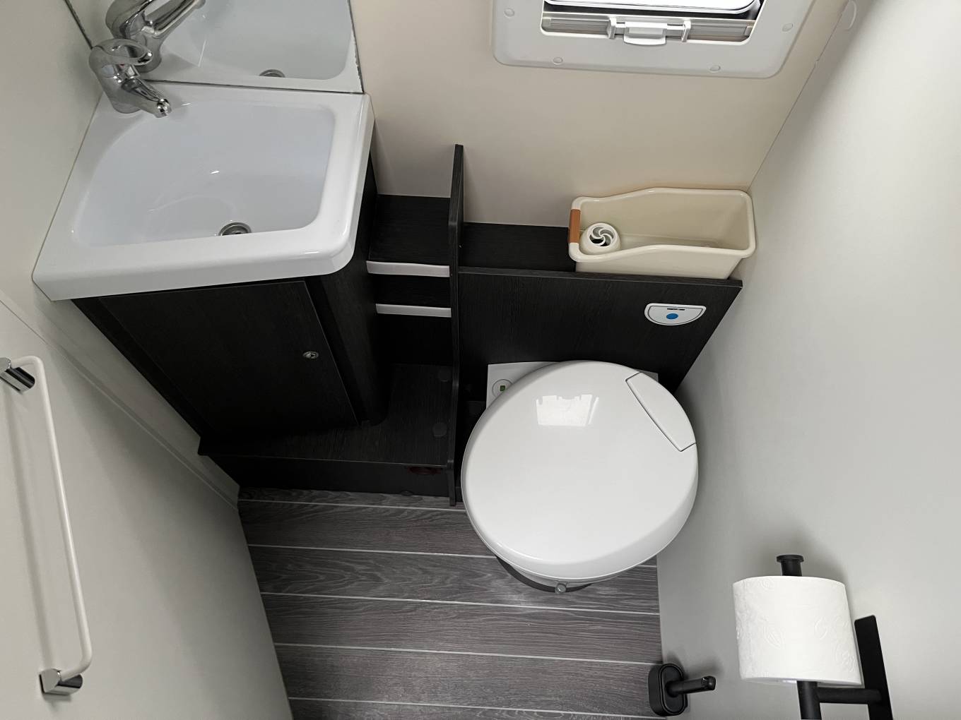 Washroom: Located in the rear sleeping area with a privacy door and separate walk-in shower cubicle with bi-fold doors shower screen for additional privacy. The W.C consists of an electric flush cassette, toilet, sink with vanity unit, wall mounted mirror, additional storage space and opaque opening window.