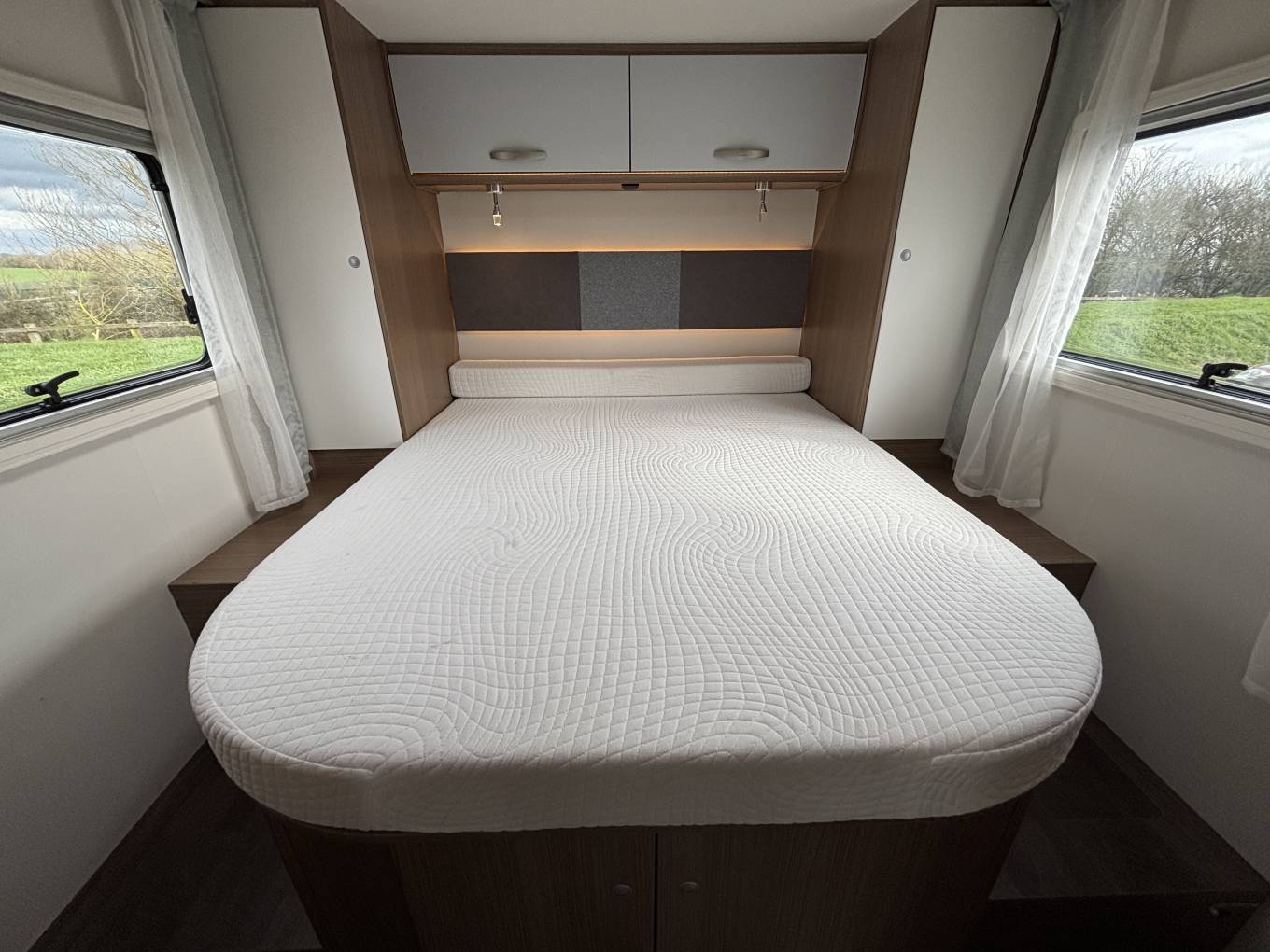 Towards the very rear of the motorhome is the much sought after island bed which allows access from both sides. There is also storage above and below the bed, as well as hanging wardrobes both sides. The beds sit atop the garage accessed outside by a door on either side of the vehicle.