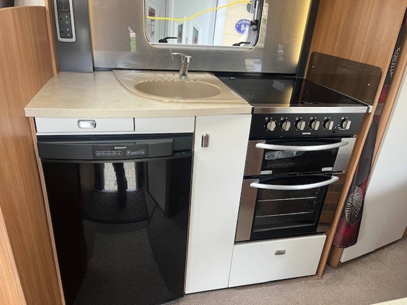 The Kitchen Area comes equipped with Full Oven, Hob, Grill, Sink, Microwave plus 3 Way Fridge Freezer