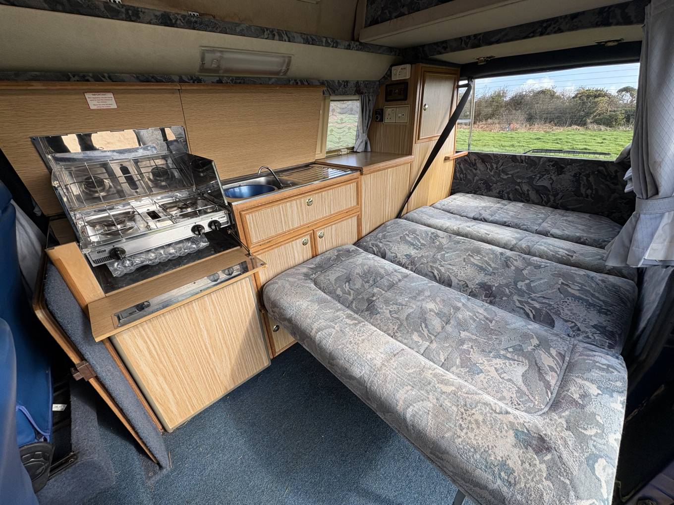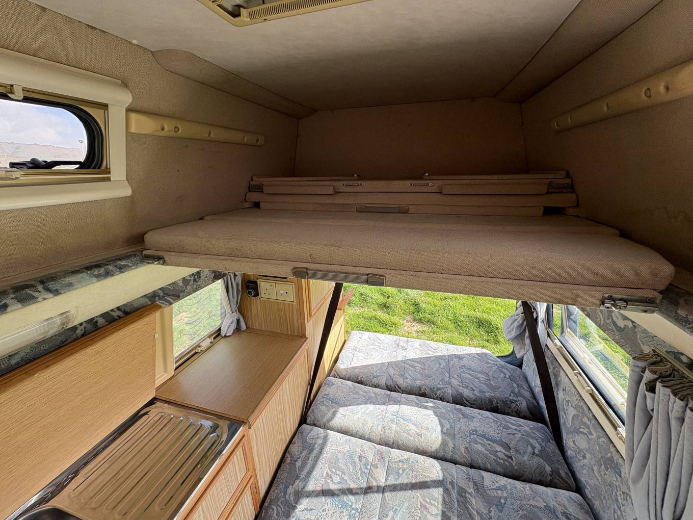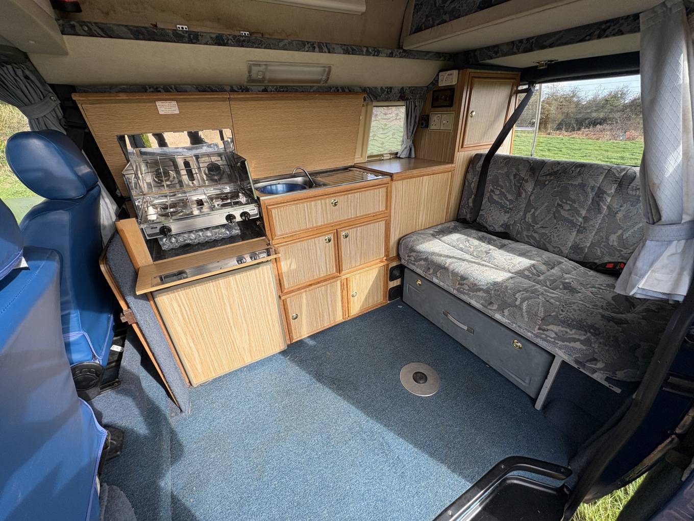 Features include, Cab Air Con, Rock and Roll Double Bed, Leisure Battery, Gas Bottle x2, Store Away Dining Table, Heating in the Living Area, 2 Sets of Keys, Outside Awning Kit, Levelling Wedges, 2 Gas Hobs, Grill, Fridge, Plenty of Storage Lockers, High Roof Area that could sleep one or be used as extra storage, Swivel Passenger Seat, and Original Manuals which is a lovely touch for the next owner.