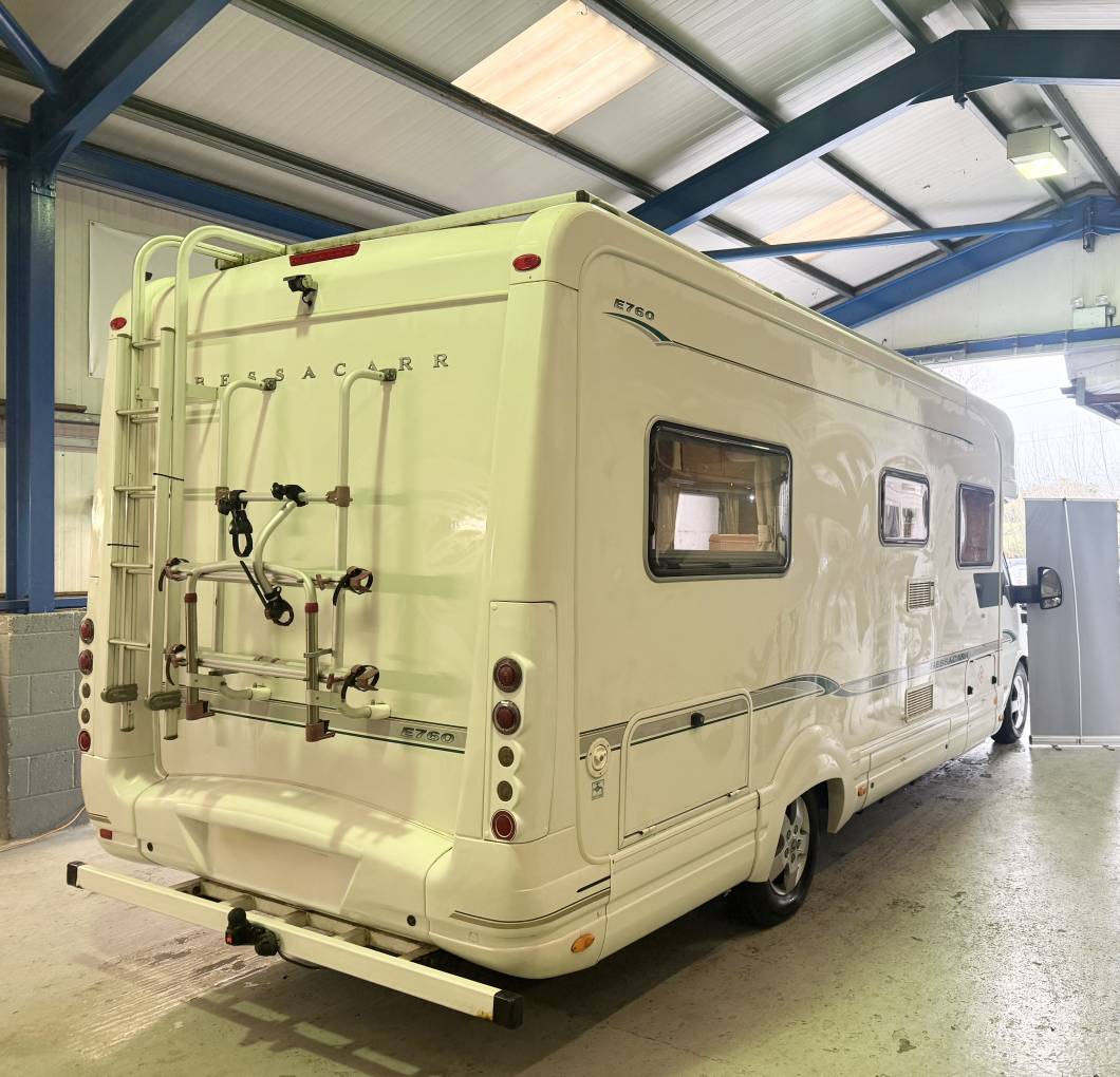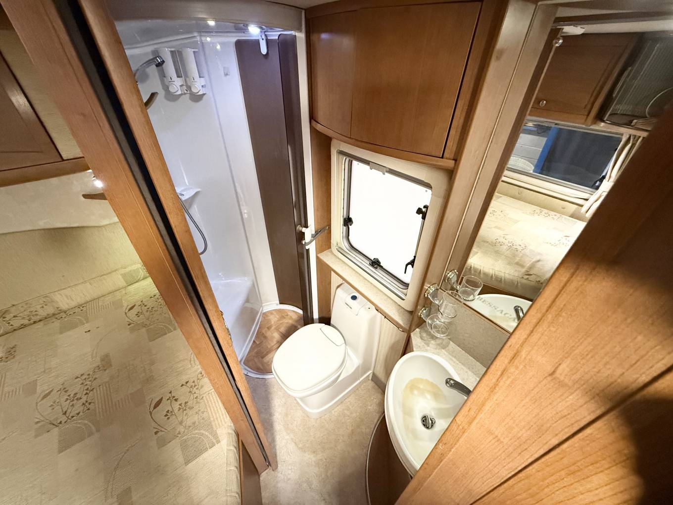 Here is a great example of the ever popular 2006 Bessacarr E760. This well looked after motorhome comes with a 2.8L fiat engine. This 4 Berth motorhome comes fully loaded and ready to go. The cab is bright and airy leading into the lounge , with two very comfortable bench seats which convert quickly and easily into a really good sized double bed. The kitchen is well equipped with a microwave, a full size cooker with oven ,grill ,3 gas and one electric ring and an integrated 3 way fridge and sink. To the rear of the motorhome is the fixed french bed that has lots of storage beneath. Moving on to the bathroom, again this is fully equipped with toilet, wash hand basin and a separate shower cubicle.