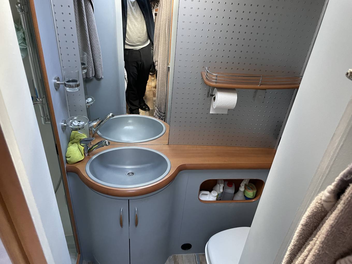 The kitchen is actually functional, which is a huge plus. You get a big fridge-freezer that can hold more than just two beers and a sandwich, plus a solid three-burner stove. But the real winner is the massive bathroom setup. It’s split into two sections, so you get a proper walk-in shower that doesn't involve a soggy curtain sticking to your leg.