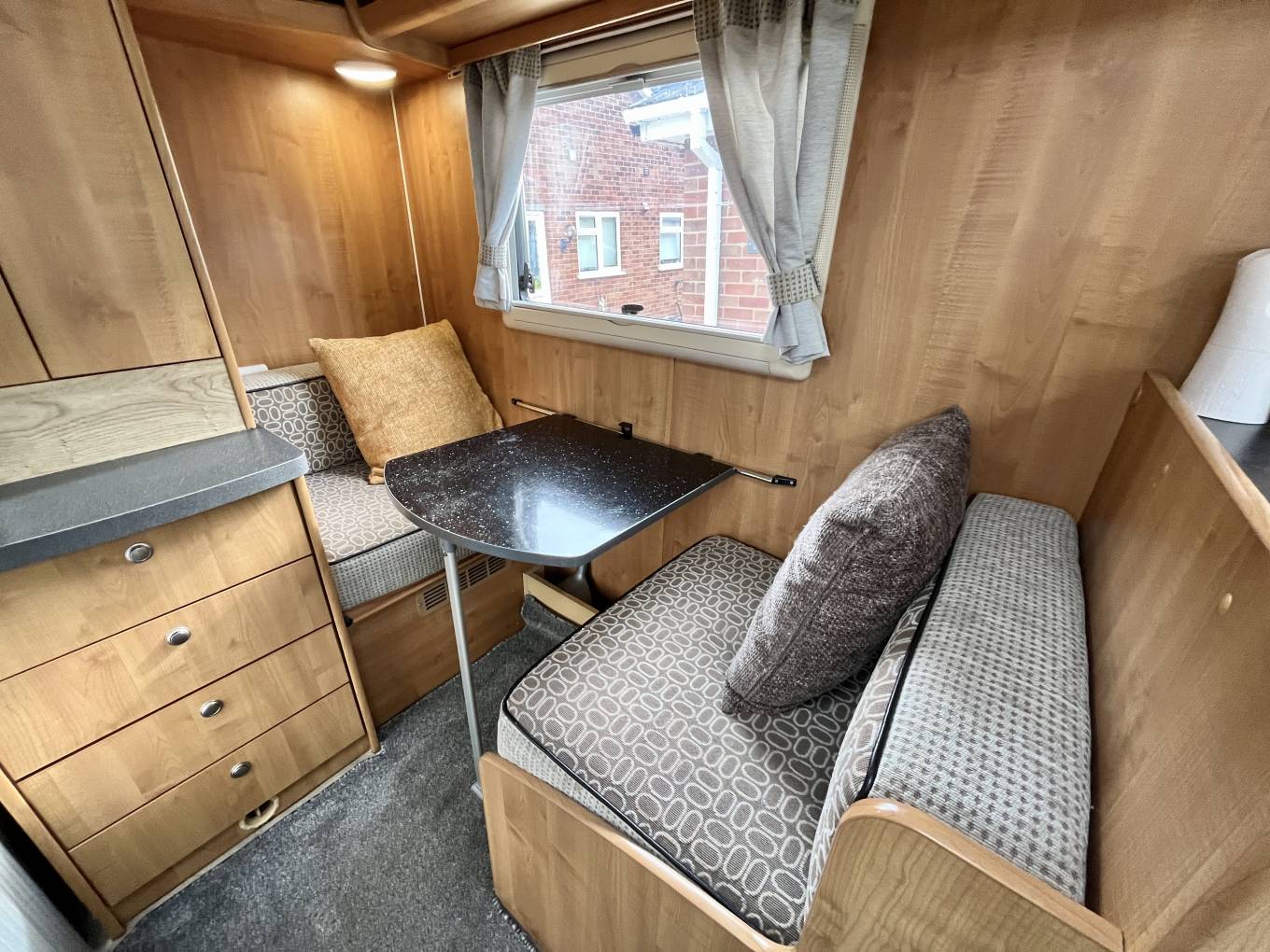At the side of this is a very useful second dining area for two people complete with removable table, this area can also be converted to a good sized single bed when required should a guest wish to stay.