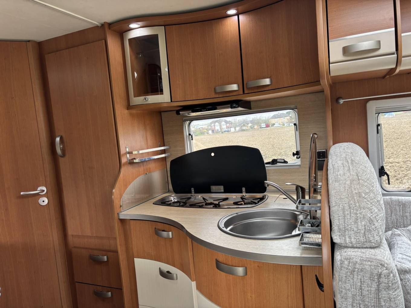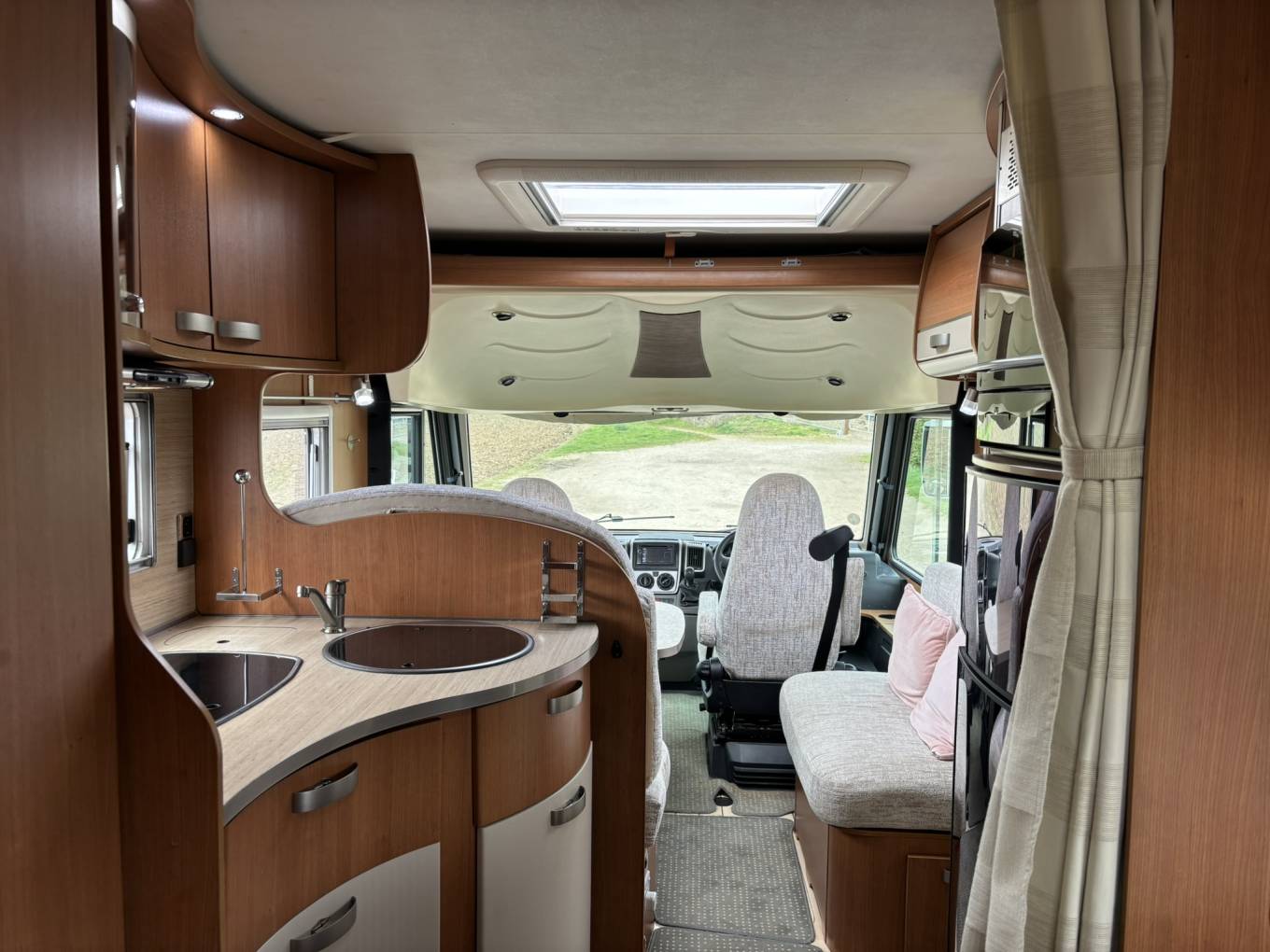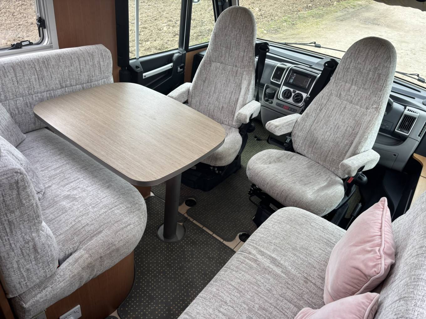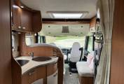 The Pilote G690 offers a practical and comfortable layout, making excellent use of its interior space. The lounge area benefits from swivel cab seats, creating a bright and open living space ideal for relaxing or dining. The kitchen is fully equipped with a 3 ring gas burner hob, oven/grill and fridge freezer. The washroom provides a separate shower cubicle, cassette toilet and vanity unit, offering convenience and comfort while travelling.