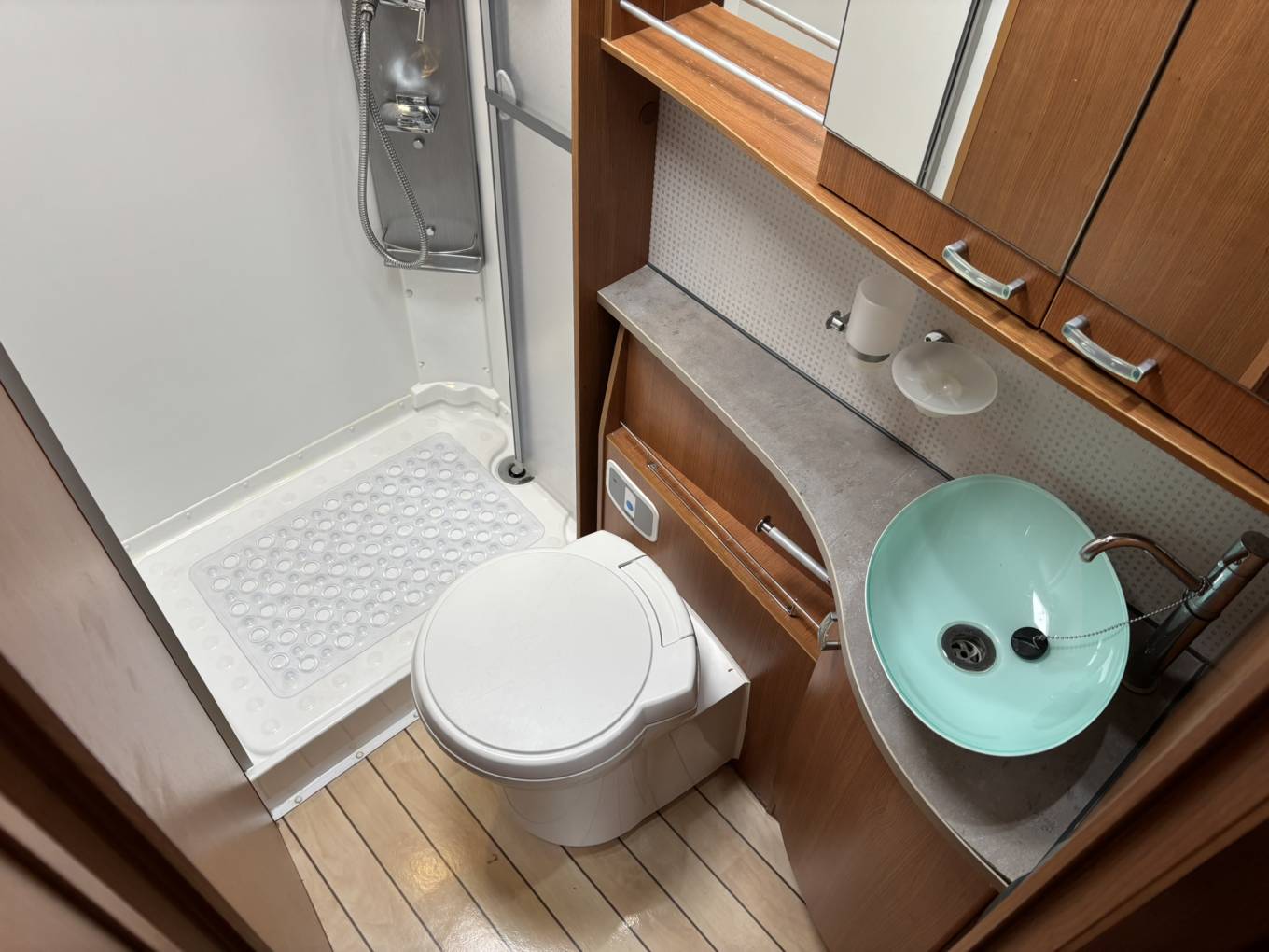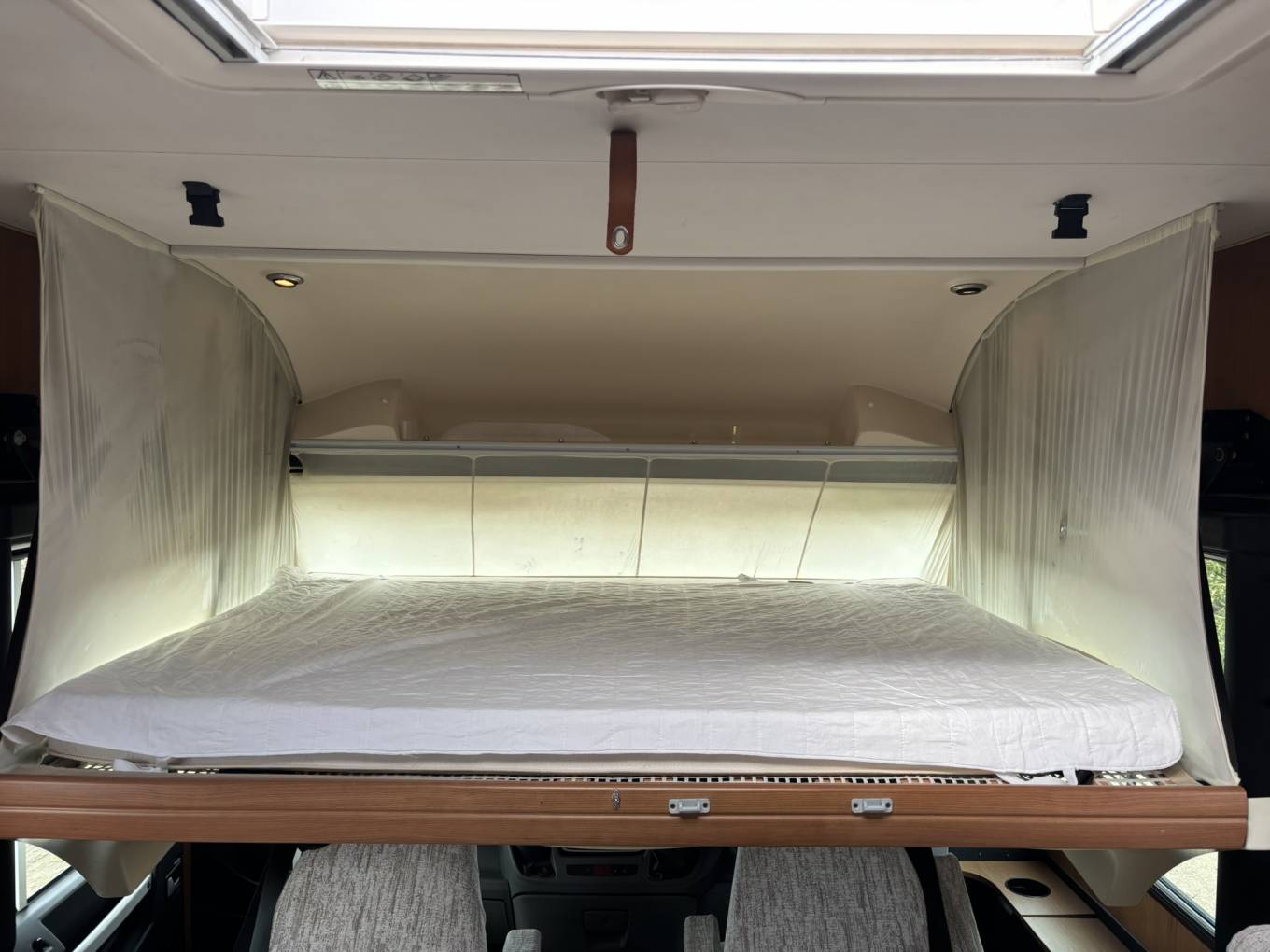 Gaslow refillable gas system, Electric entrance step, Solar panel & Reader, Swivel cab seats, Rear garage storage, Blinds and flyscreens, 3 Ring burner hob, Oven & grill, Fridge / freezer, Shower cubicle, Cassette toilet, Truma Combi heating & hot water system, Flyscreens and Blackout blinds, Ample overhead and wardrobe storage, Bike rack, Fiamma Awning