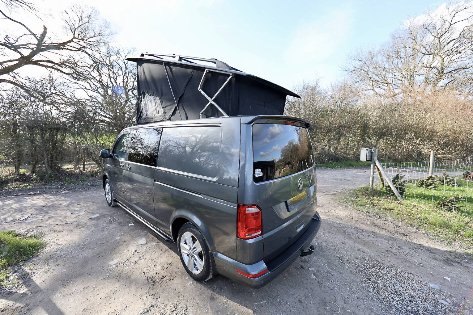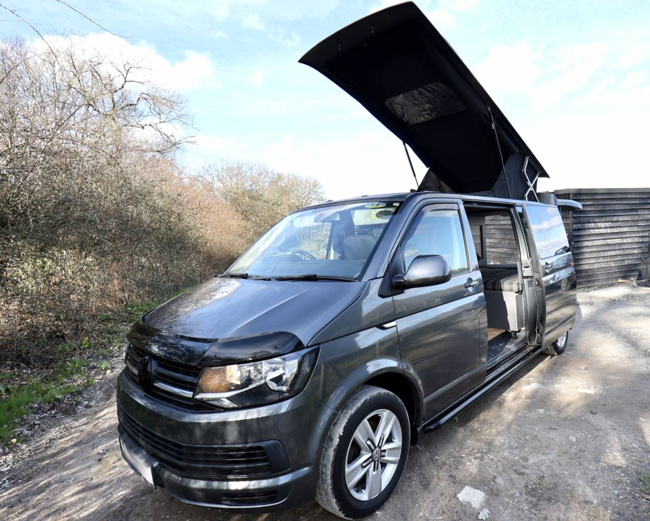 The long wheel base of the camper gives more room to move around in side, you feel less on top of one another. There is also a inflatable side awning that will also sleep two more people. The location of this camper is Wivelsfield Green, East Sussex.