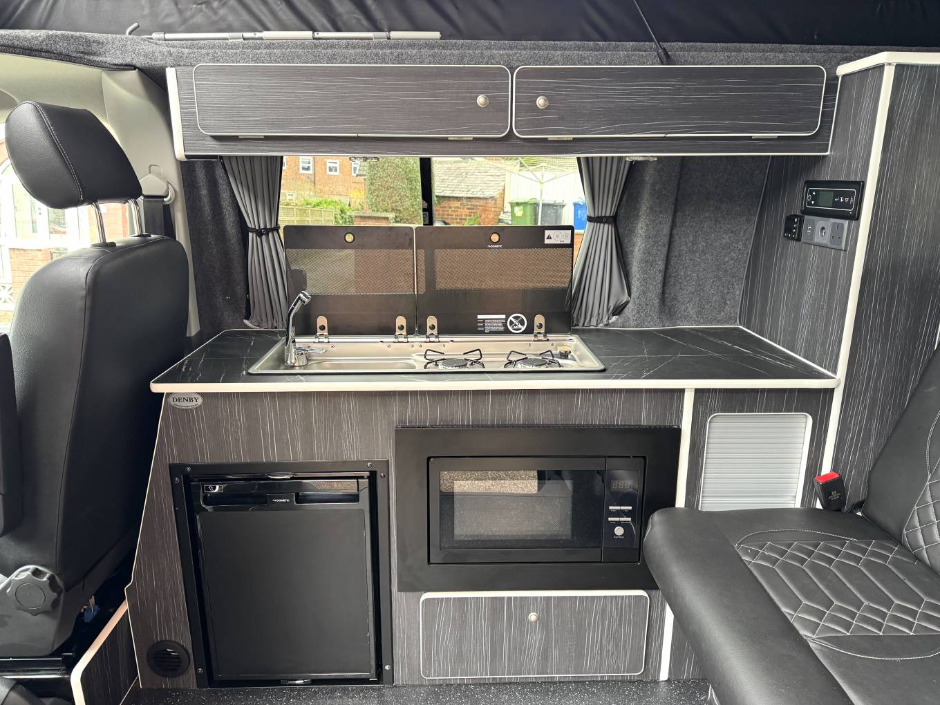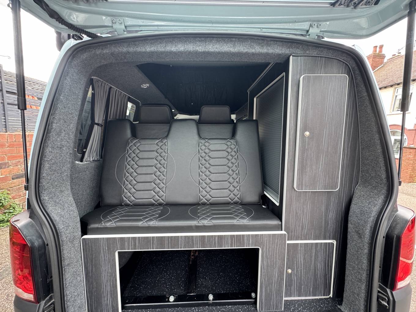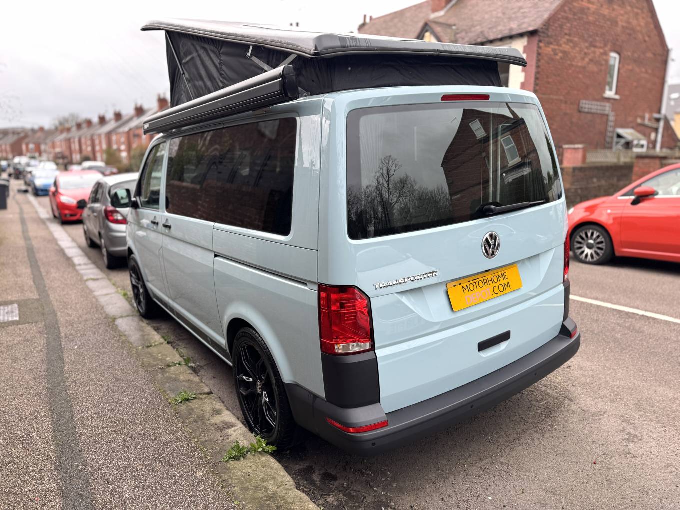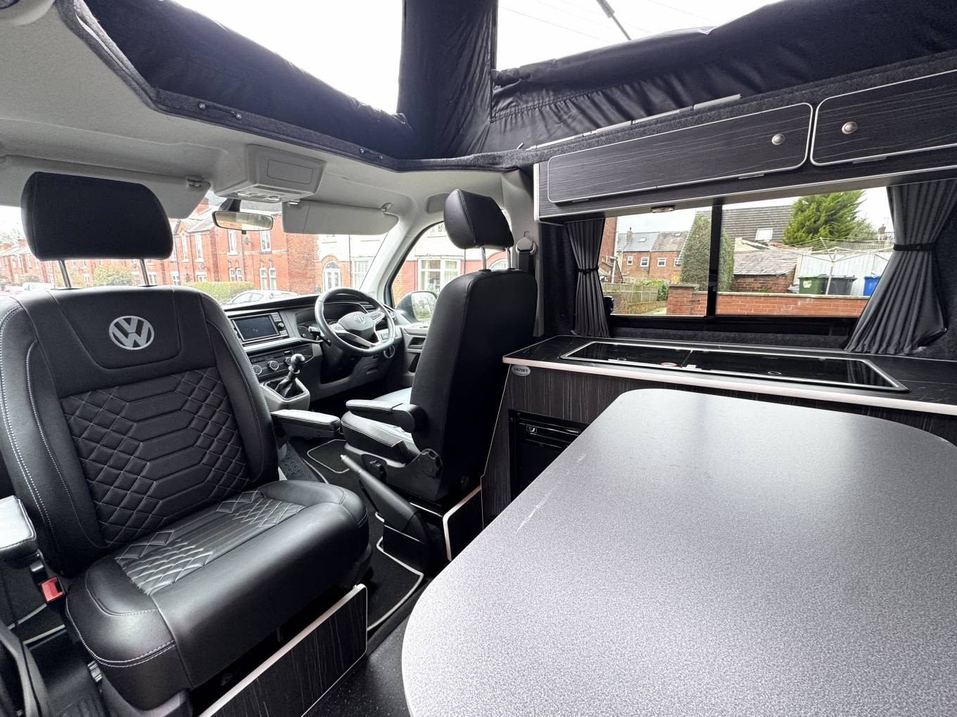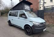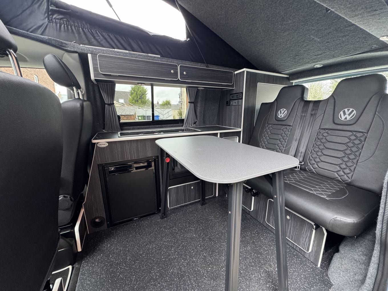 Finished in a distinctive light blue colour with black alloy wheels, the vehicle presents well externally and features a pop-top roof which provides additional headroom and an elevated sleeping area. The Danbury conversion offers a practical and well-finished living space designed for touring and weekend trips.
