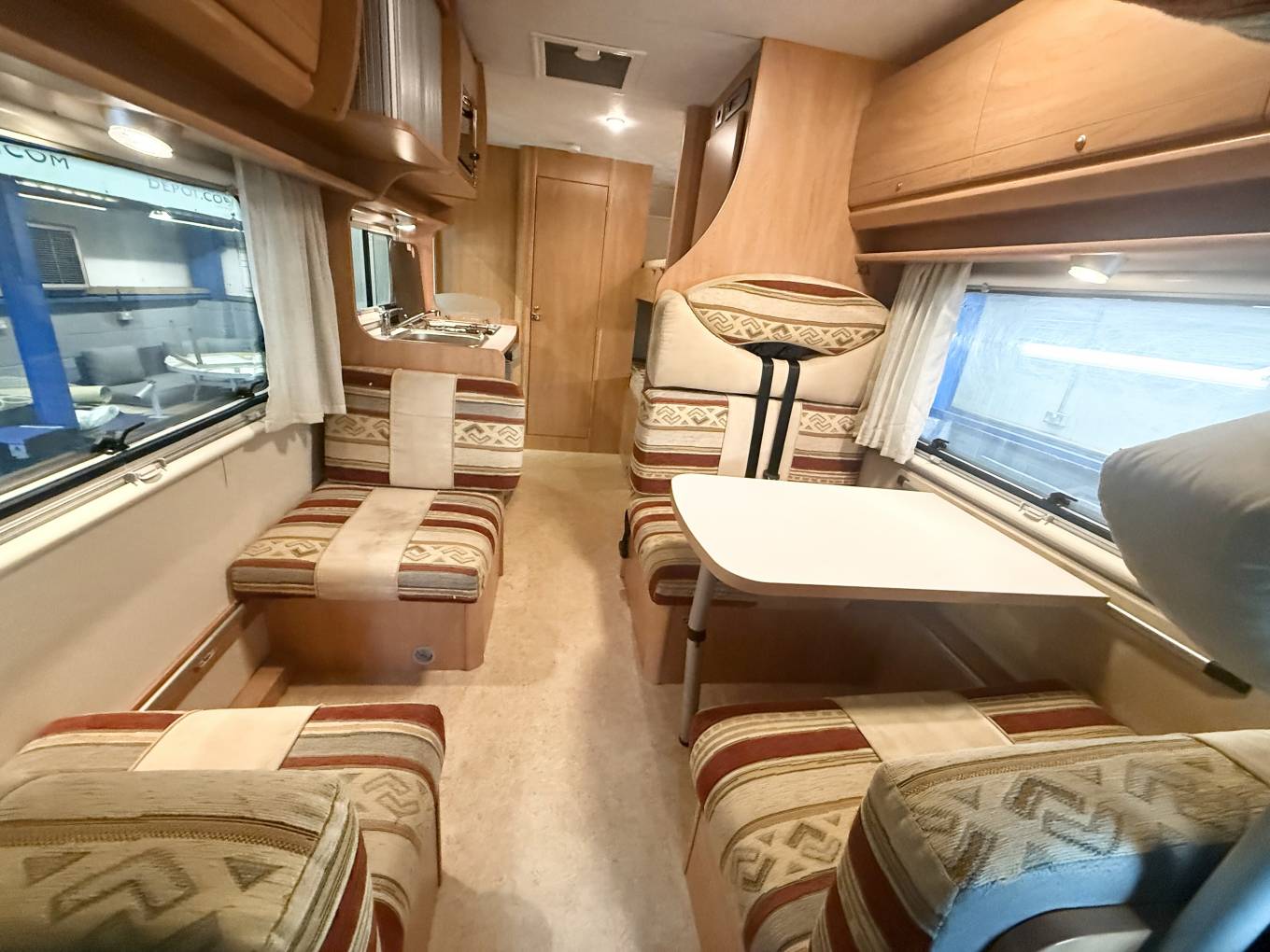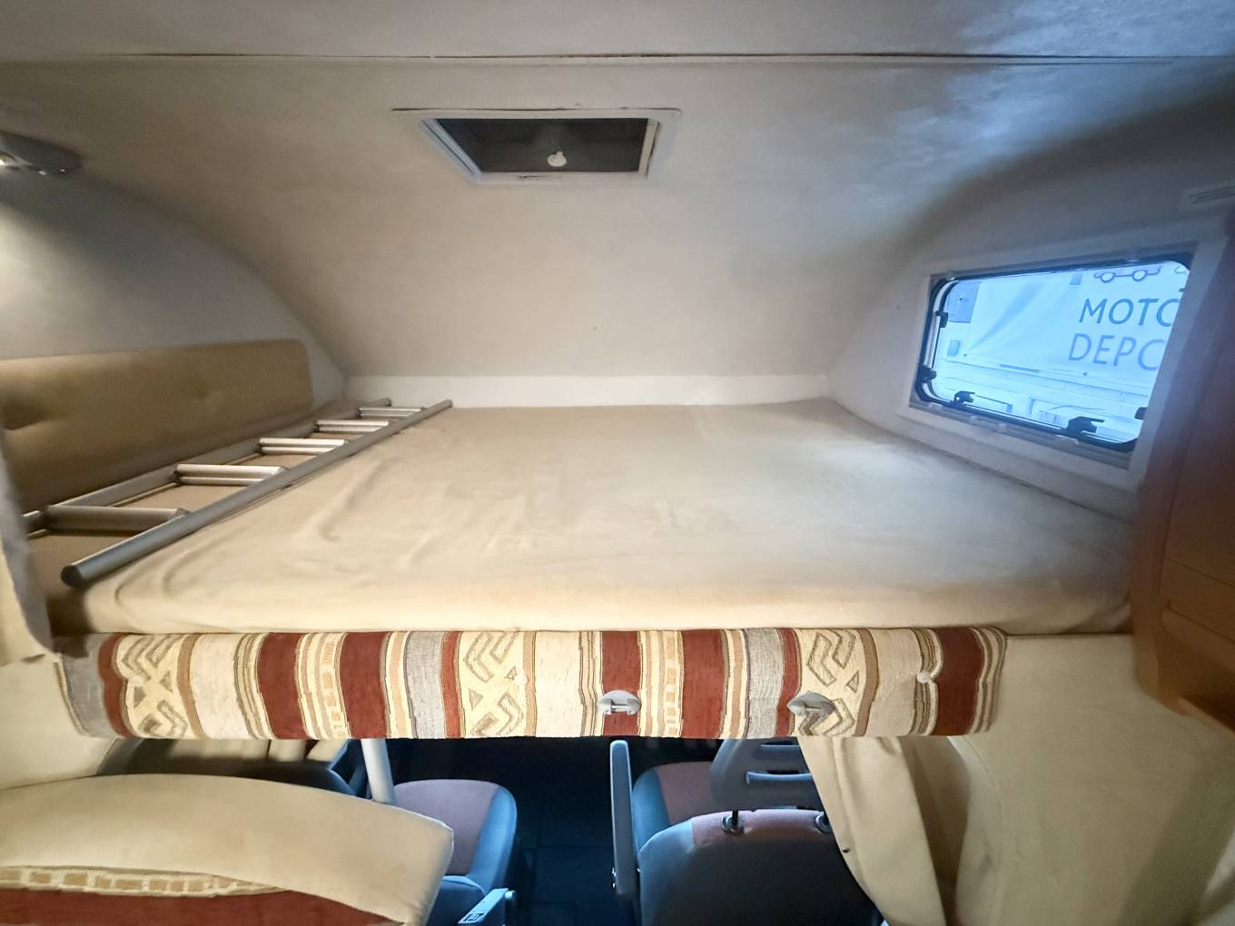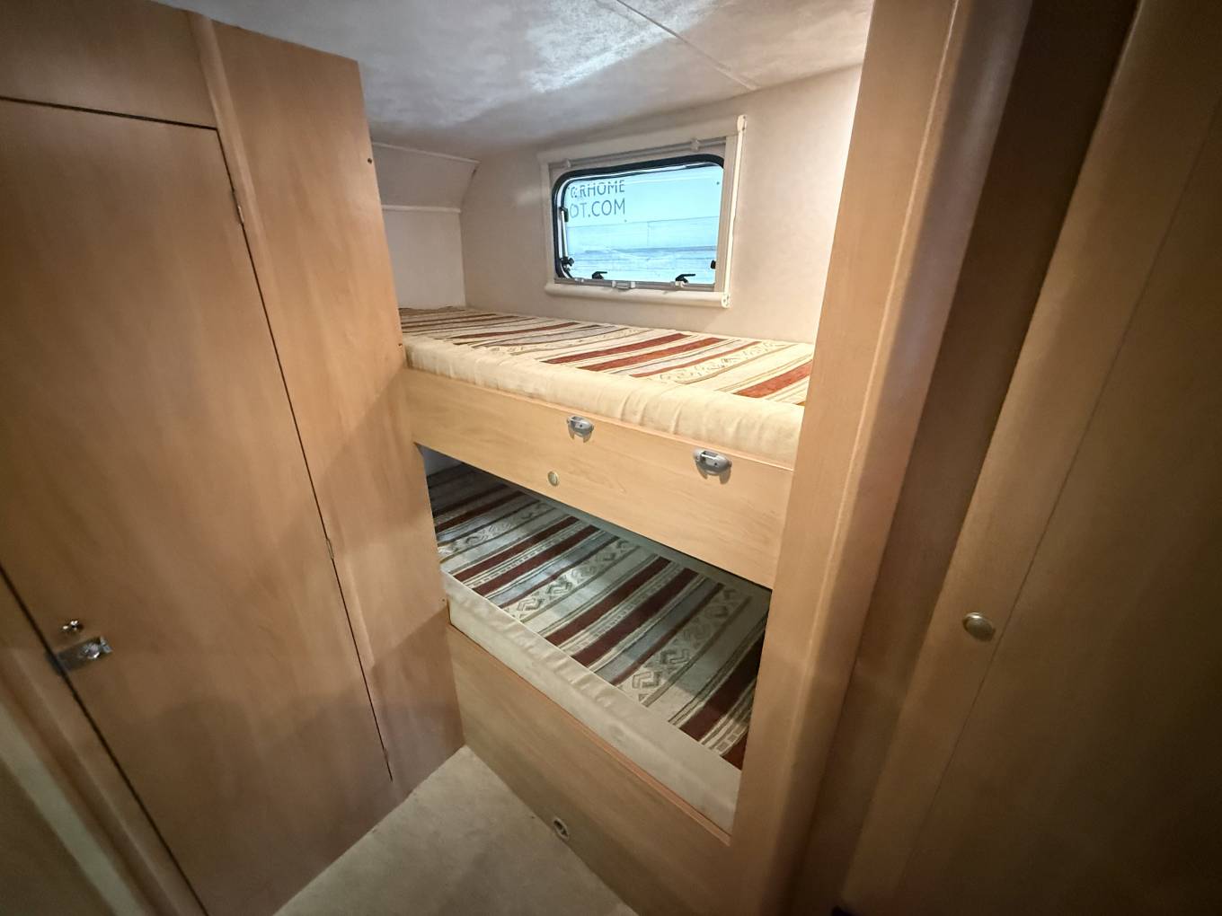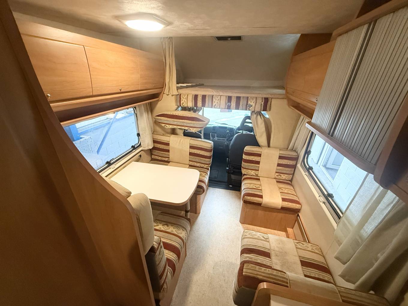Introducing this 2007 Sea Sharky L5, The layout is a front lounge, rear bathroom, mid kitchen and bunks arranged across the left rear. There are seat belts for 6 people. The bunks are big enough for adults as both bunks are more than six feet long and should be plenty wide enough. The bottom bunk folds up to help create a garage, loaded through an external locker door. This motorhome really does cater for all with its useability for having a over cab bed in the lounge area and double bunk beds. In Addition to this the bottom bunk folds up which you could use as extra space for storage when you travel around. great benefit for a motorhome this size is having a separate toilet and shower. the lounge area makes into another bed so plenty of areas for sleeping ooptions.