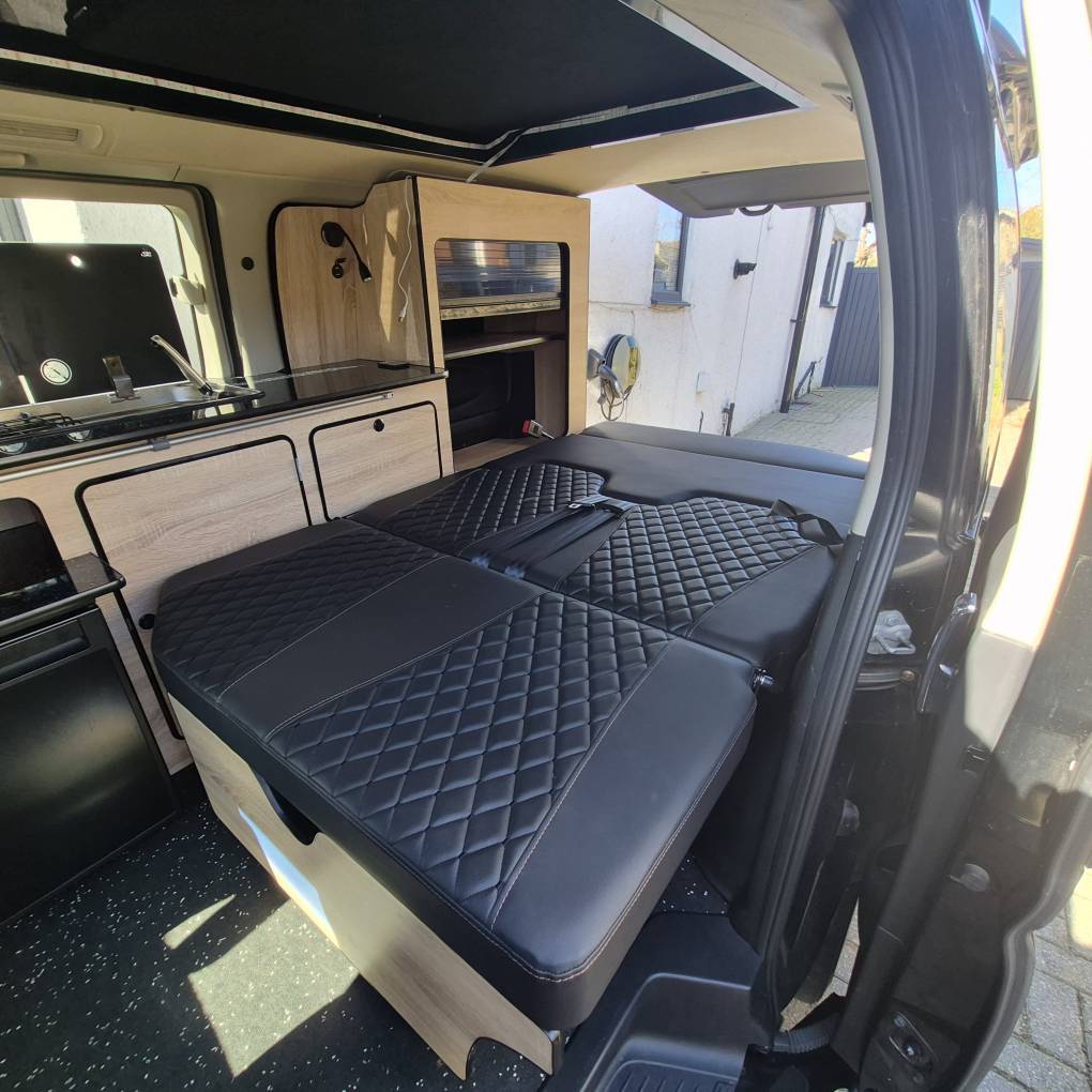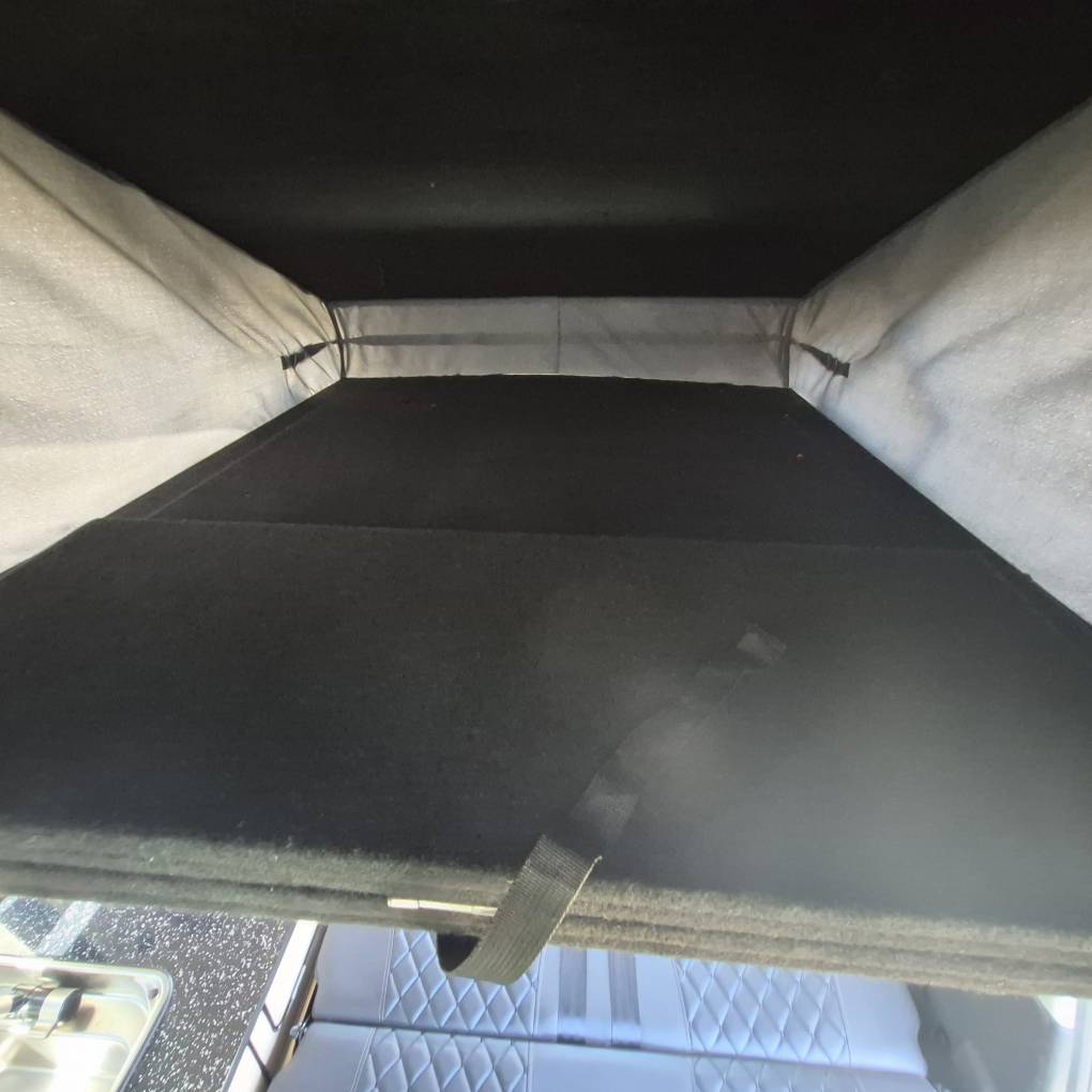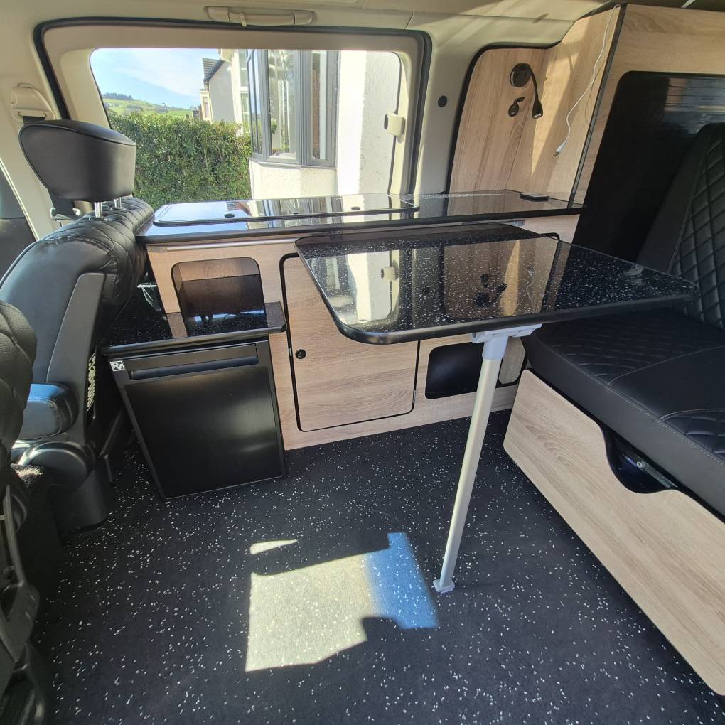 The camper comes with Outdoor Revolution T3 drive away air awning with Porch door, 2 person sleeping compartment, ground sheet and carpet. Bed specific memory foam mattress topper, hook up cable gas bottle and a few essentials for easy camping. Finished in the rare tricolour pearlized black you really will stand out from the crowd.