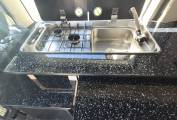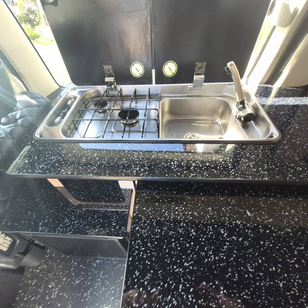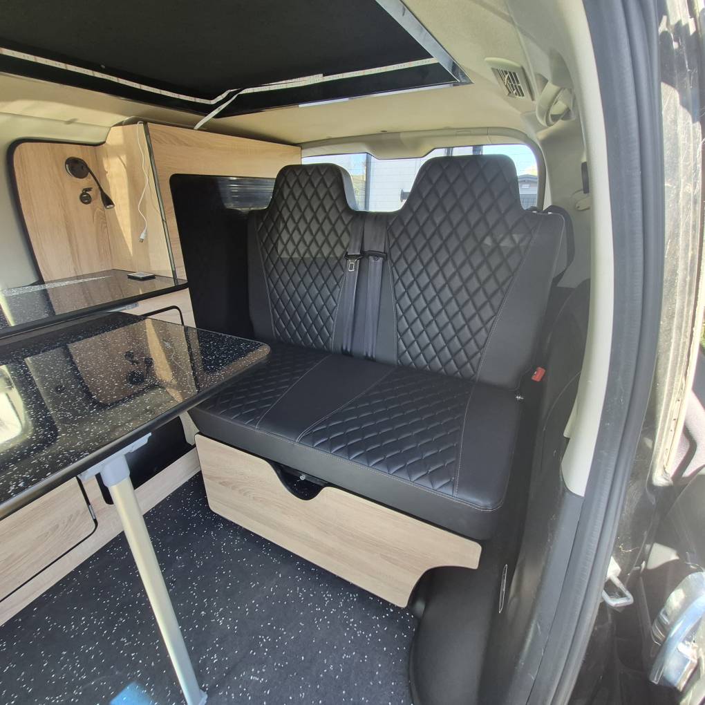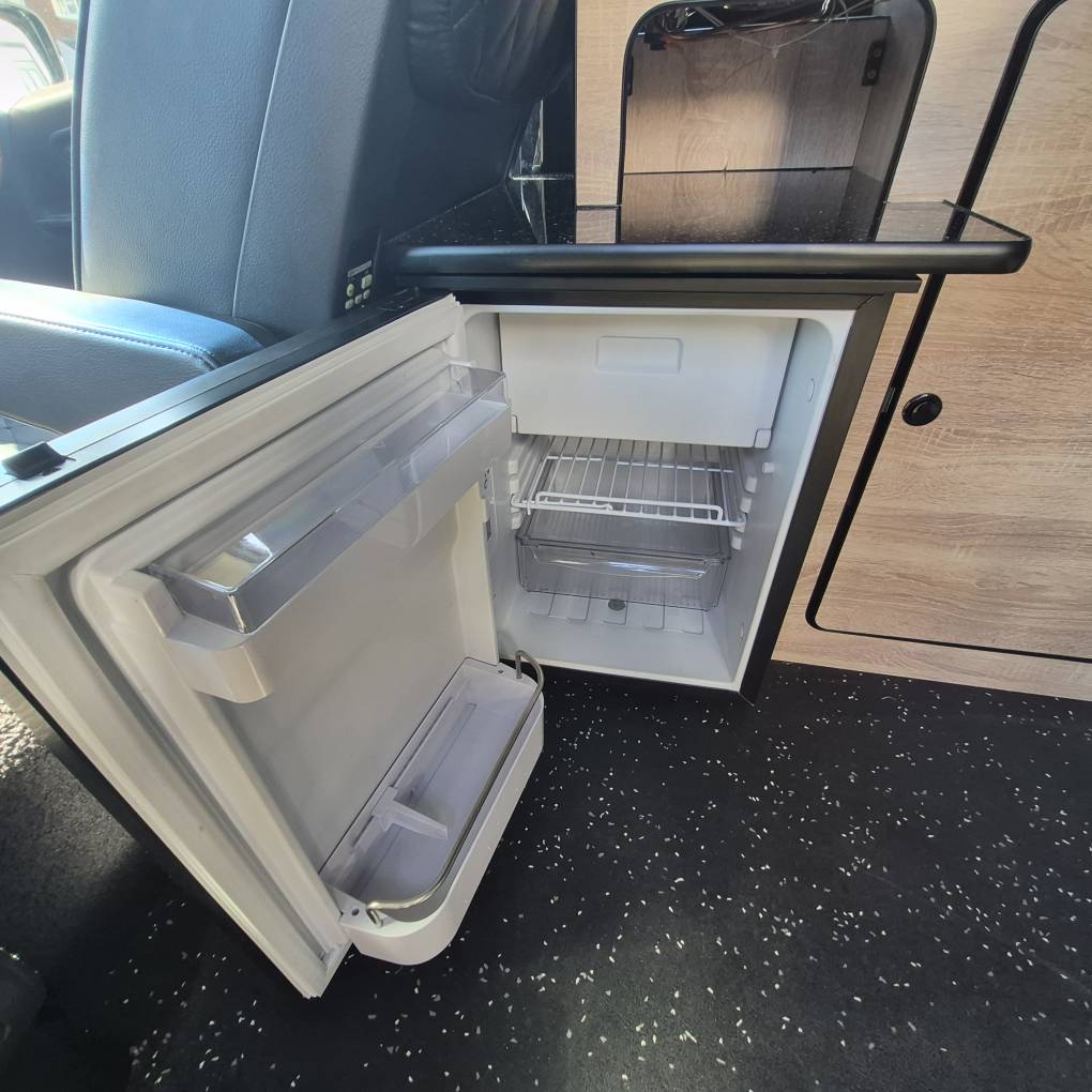 The camper comes with Outdoor Revolution T3 drive away air awning with Porch door, 2 person sleeping compartment, ground sheet and carpet. Bed specific memory foam mattress topper, hook up cable gas bottle and a few essentials for easy camping. Finished in the rare tricolour pearlized black you really will stand out from the crowd.