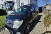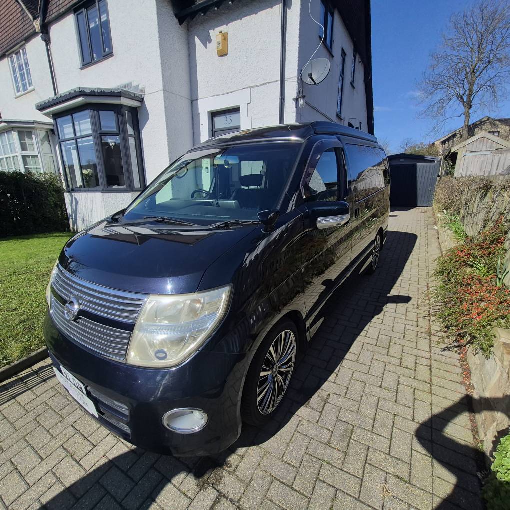 Motorhome Depot Leeds are excited to offer for sale this 2009 Nissan Elgrand E51 4Berth 4 Belt automatic camper. This camper was professionally converted in 2024 to a very high standard and has had one owner since the conversion. The camper comes with a two burner gas hob sink unit and a 12vt fridge with a small freezer compartment and lots of storage. To the rear we have a forward facing seat with two travelling seat belts and this easily converts into a very comfortable double bed. We have the pop top roof giving way to another double bed. Open the rear door to find a very comfortable double bench seat.