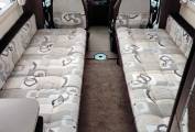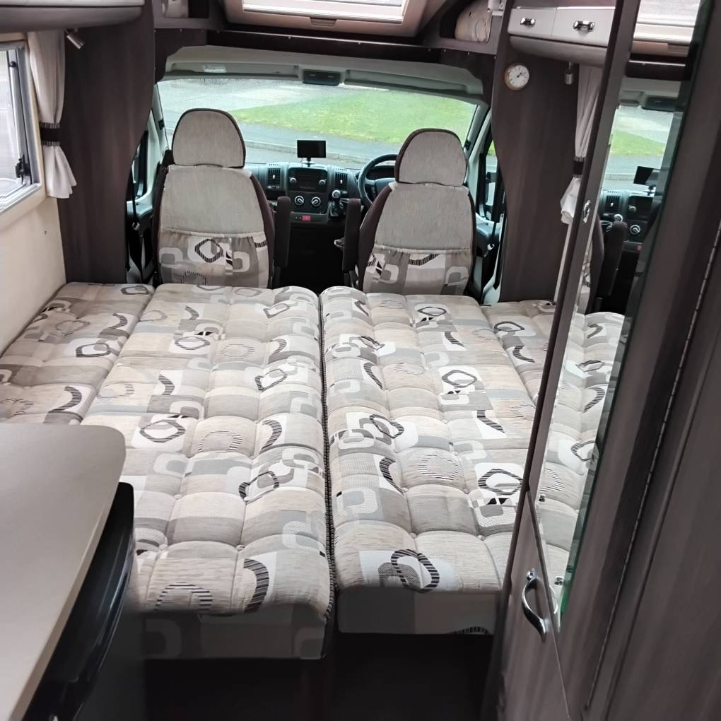 Inside, you’ll find a bright and spacious lounge with twin bench seats that effortlessly convert into comfortable (6ft plus each side), sleeping arrangements, alongside the popular rear end-kitchen layout that provides excellent workspace and storage for cooking on the go. High-quality furnishings, premium appliances, and thoughtful storage solutions make it ideal for both short getaways and extended continental touring.