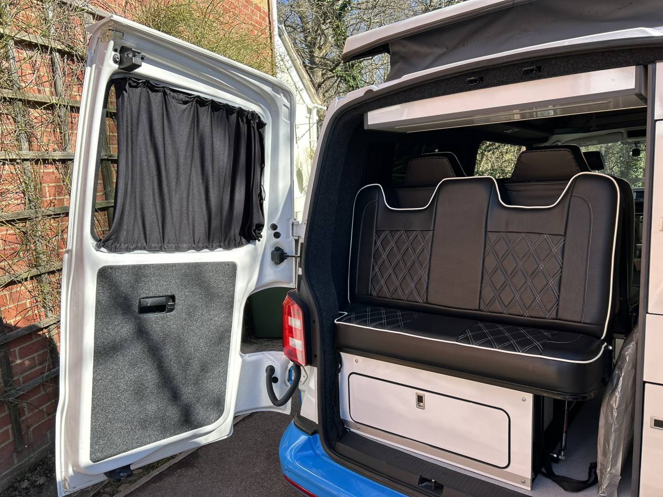 Outside the van has an upgraded bumper and grills, Fully colour coded in Blue and White, Lowered suspension, EHU, Fully glazed and an awning rail.