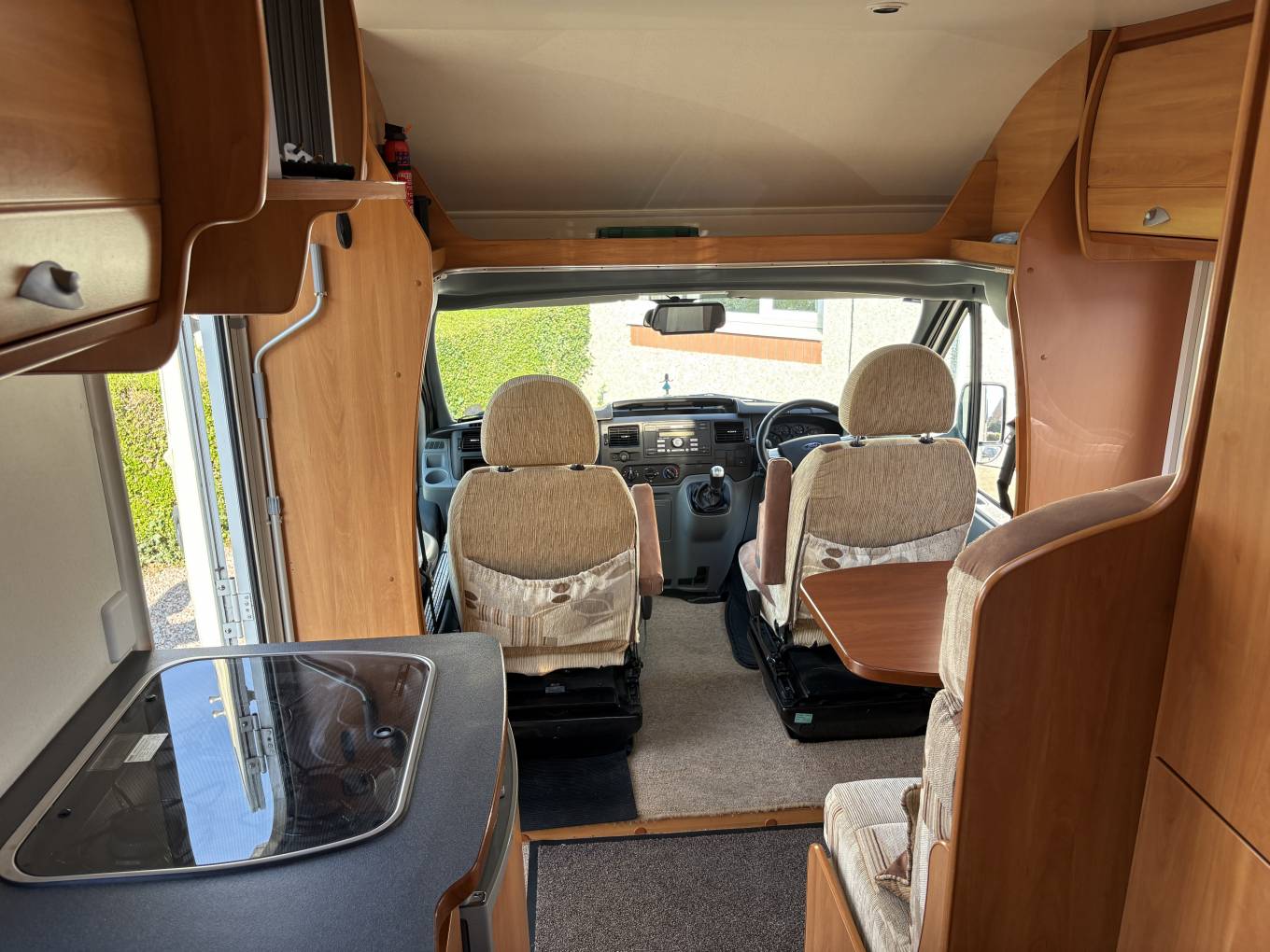 The motorhome is based on a Ford Transit Chassis powered by a 2.2 litre Chain driven diesel engine coupled to a 5 Speed Manual Gearbox. The cab benefits from Ford CD player, electric windows, cab air con and cruise control.