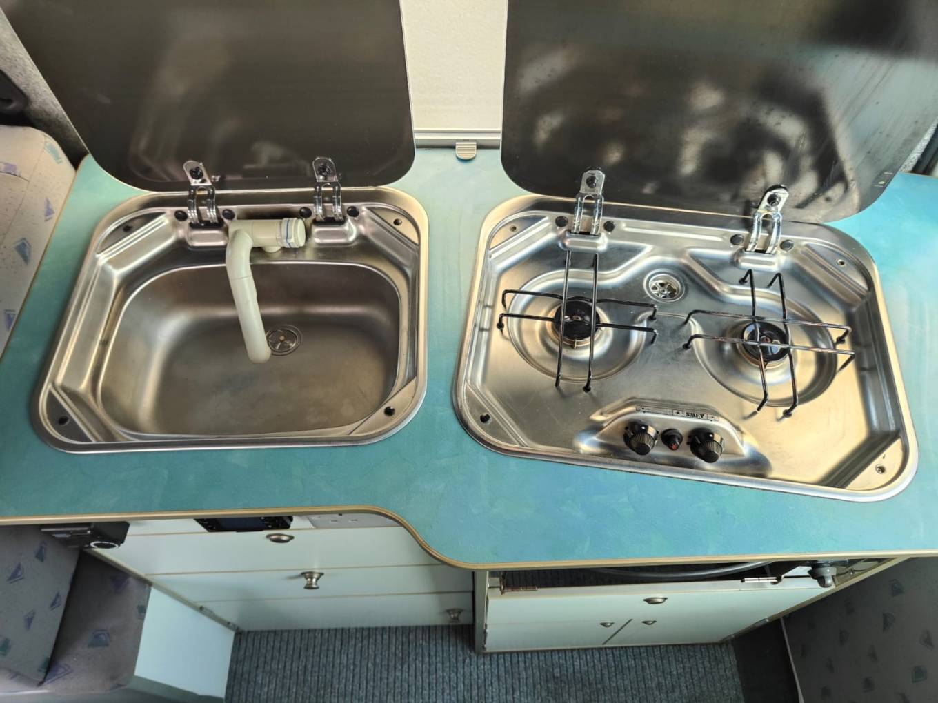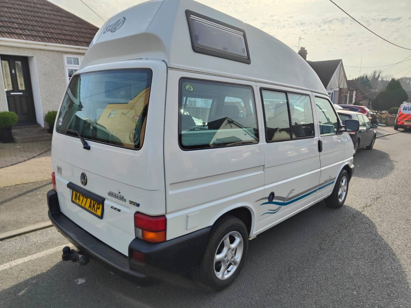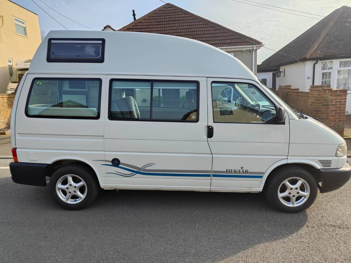 This is a really nice example of a near classic Bilbo Nektar based on the excellent VW Transporter T4 2.5 turbo diesel. This high roofed camper features 2 singles that utilise the 2 rotating Captains seats with a rear kitchen with 2 burner hob, grill, compressor fridge, diesel heating and sink. There is a rear cupboard down low that is designed to take a portaloo which is not included. Excellent storage. 107k miles from new with an MOT until december 26. Based in Kent and more pictures available. A few signs of age but overall very good condition.